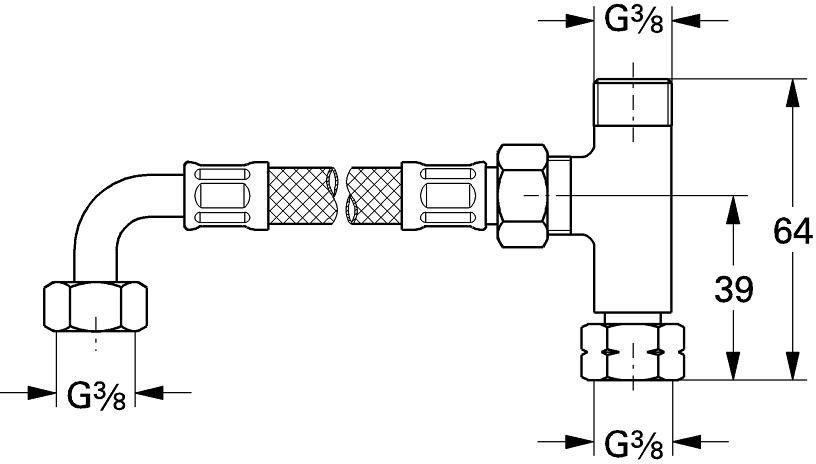 Grohe Набор подключения для универсального термостатановинка В данный момент этот товар отсутствует в продаже. Возможно, у нас найдется аналогичный или похожий товар здесь. Серия: Grohtherm Гибкая подводка и Т-образный переходник для подключения внешнего термостата. |