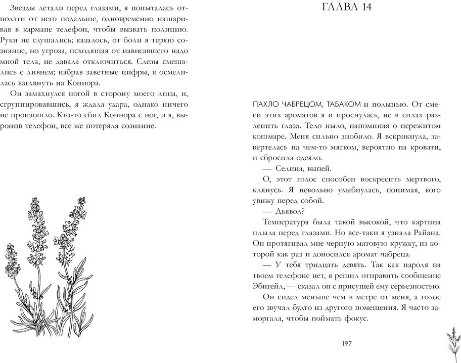 Лавандовая ветвьновинка В данный момент этот товар отсутствует в продаже. Возможно, у нас найдется аналогичный или похожий товар здесь. Серия: #trendbooks Добро пожаловать в кофейню «Лавандовая ветвь», при покупке кофе — веточка лаванды в подарок. Когда-то бабушка рассказала Селине, что лаванда притягивает любовь. В трудные времена эта легенда помогла девушке удержать ее кофейню на плаву. Селина думала, что талисман привлекает лишь новых клиентов, пока однажды не приколола веточку лаванды к униформе... В тот же вечер она стала свидетельницей преступления и впервые столкнулась с... Дьяволом. Этот загадочный незнакомец с медными волосами и незабываемом взглядом начал преследовать девушку во сне и наяву. Неужели веточка лаванды привлекла в жизнь Селины любовь и Дьявол действительно ее вторая половинка? Или все дело в ее кофейне, которая мешает темным делам банды Дьявола? О КНИГЕ: Страстная главная героиня, юмор, атмосфера маленького английского города; Первая книга в серии одиночных романов автора; Уютная история про будни кофейни в английском городке; Черно-белые иллюстрации; В книге #кофейня #страсть #английский городок. |