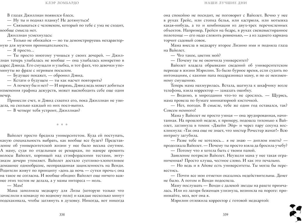 Автор — Клэр Ломбардо искусно раскрывает реальность неидеального брака, полного обид, драмы, ревности и недопониманий. Однако в центре всего — любовь и лучшие дни, ради которых стоит жить.