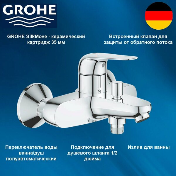 Серия: Euroeco Однорычажный настенный смеситель для ванны Grohe Euroeco с гармоничными плавными линиями и закругленными краями превращает купание в удовольствие. Эргономичная металлическая ручка и керамический картридж Grohe SilkMove обеспечивают точный контроль объема и температуры из года в год. С Grohe EcoJoy Вы даже можете наслаждаться роскошным душем, экономя при этом воду, так как расход воды уменьшается до 50%, но при этом обеспечивается чистое наслаждение. Комфорт и удобство ванной комнаты гарантированы, так как удобный автоматический переключатель позволяет очень легко переключаться между потоком ванны и душа. А сверкающее хромированное покрытие Grohe StarLight устойчиво к царапинам и очень легко моется. Одно быстрое протирание и он выглядит совершенно новым. Grohe Euroeco — спокойный органический стиль и долговечная функциональность! |