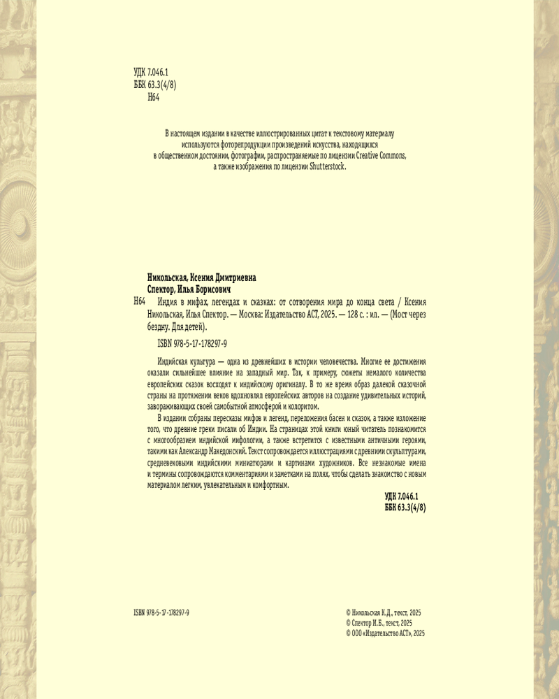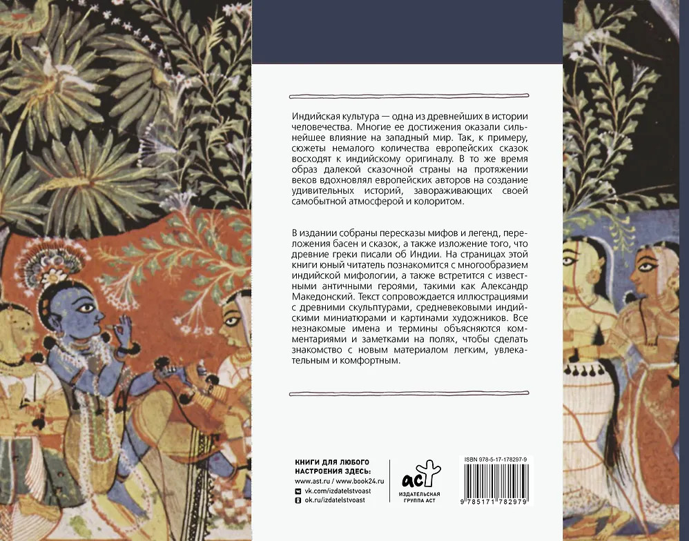 Серия: Мост через бездну. Для детей Индийская культура — одна из древнейших в истории человечества. Многие ее достижения оказали сильнейшее влияние на западный мир. Так, к примеру, сюжеты немалого количества европейских сказок восходят к индийскому оригиналу. В то же время образ далекой сказочной страны на протяжении веков вдохновлял европейских авторов на создание удивительных историй, завораживающих своей самобытной атмосферой и колоритом. |