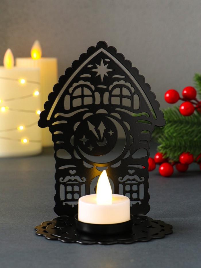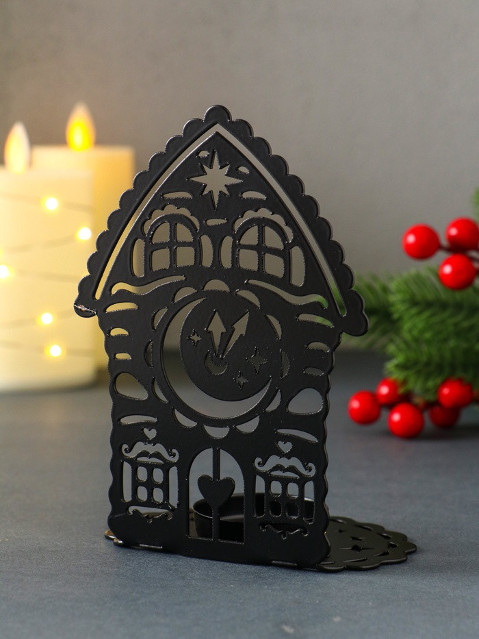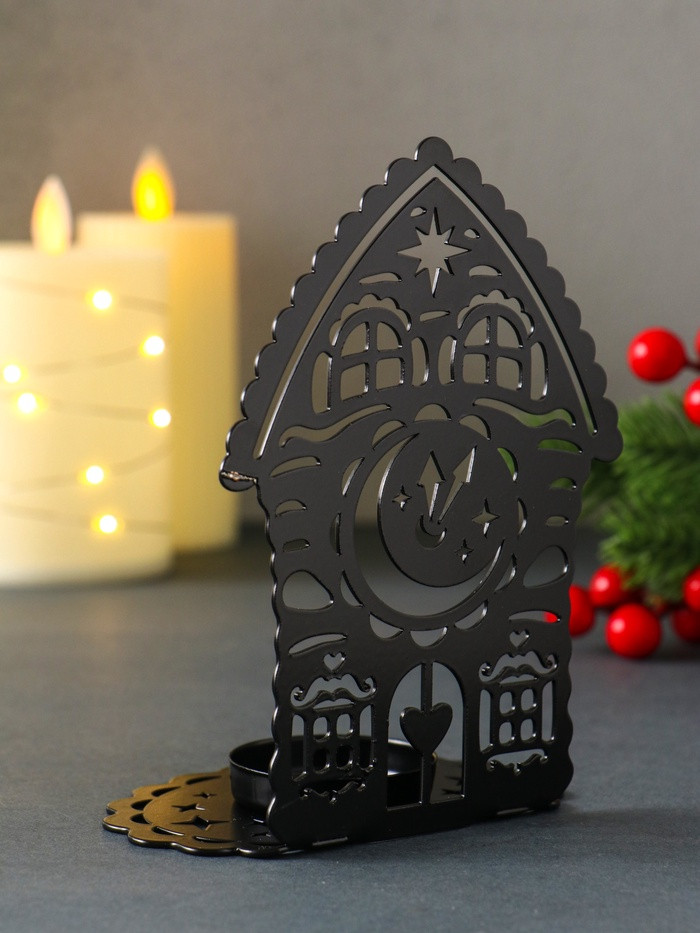 Омский свечной завод Подсвечник на 1 свечу «Домик новогодний с часами»