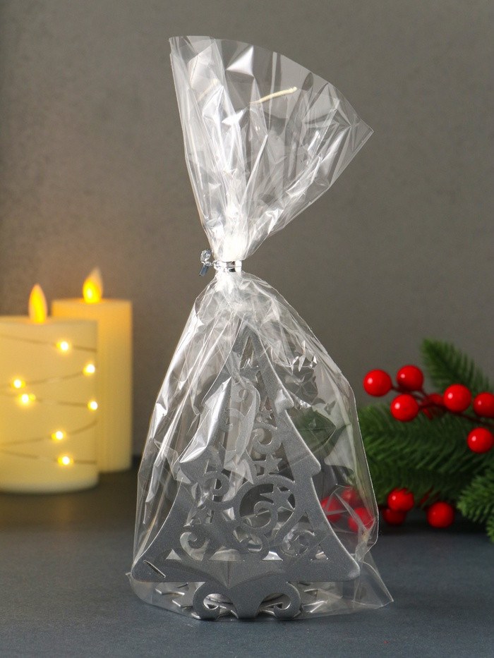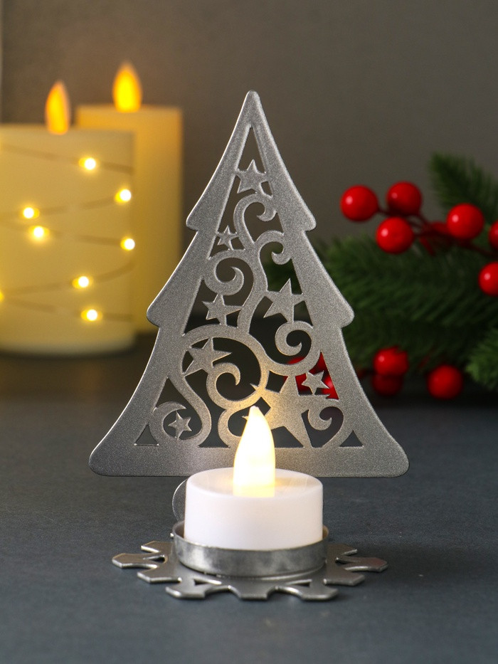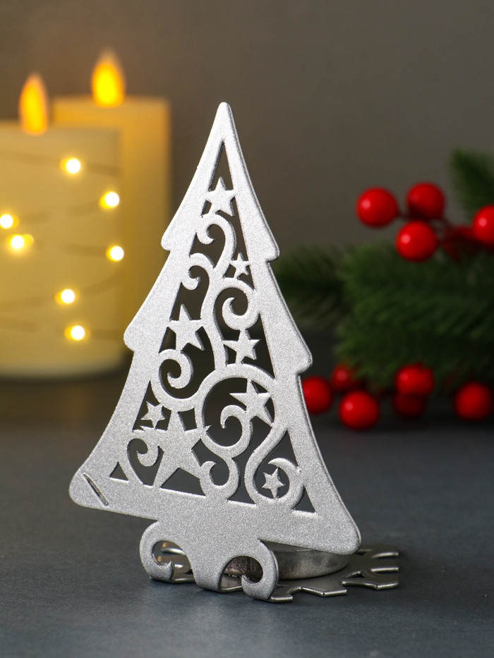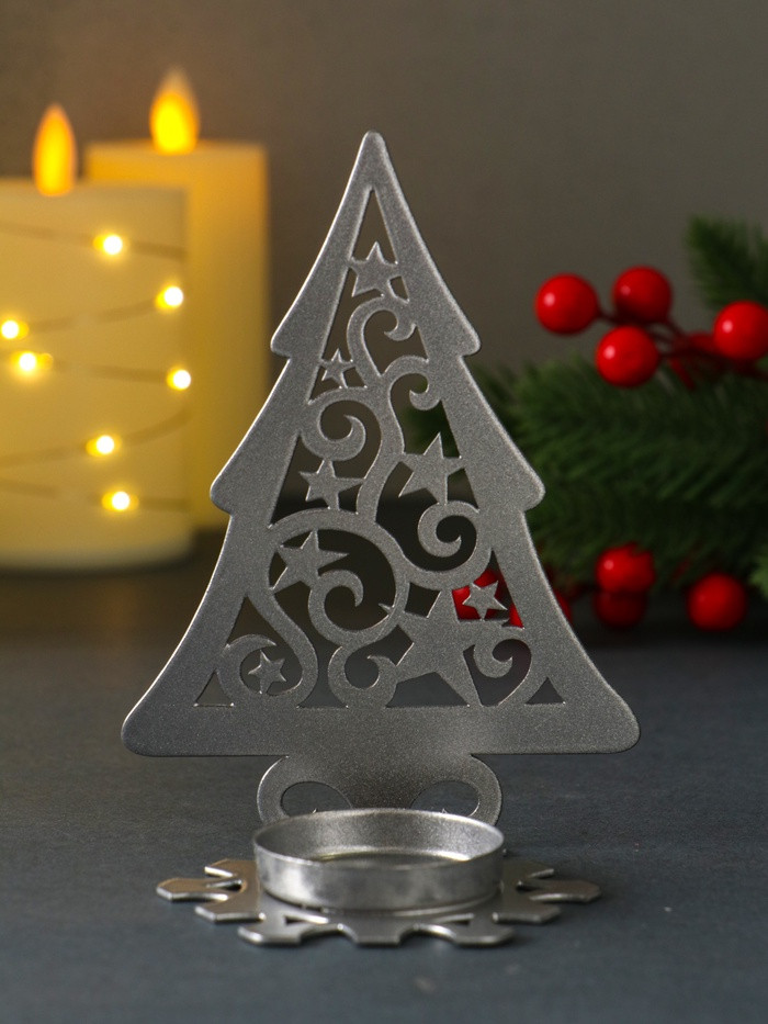 Омский свечной завод Подсвечник на 1 свечу «Ёлка новогодняя со звёздами»