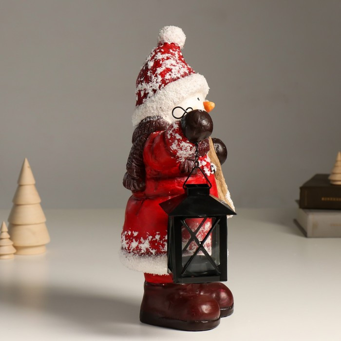 Подсвечник на 1 свечу «Снеговик в красной шубке»