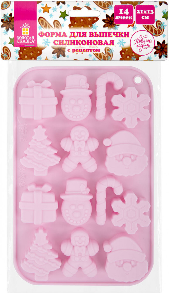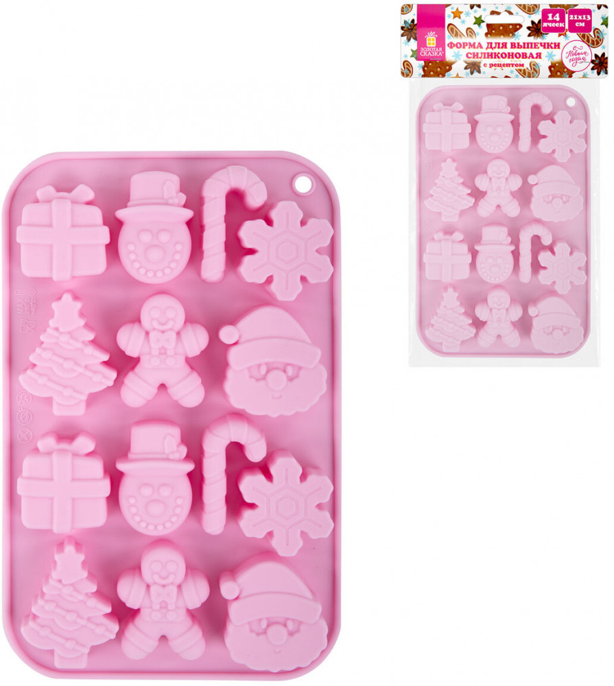 Новогодняя форма для выпечки — создавайте сладкое волшебство легко и с удовольствием! Подарите себе и своим близким радость творчества и аромат настоящего домашнего праздника. Формочка для выпечки выполнена в интересном рождественском дизайне с 14 аккуратными ячейками разных дизайнов (подарок, забавный снеговик, карамельная трость, снежинка, праздничная елочка, веселый Дед Мороз, пряничный человечек).