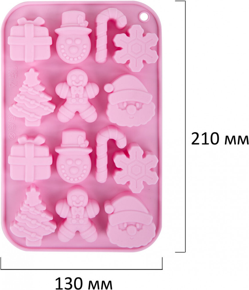 Формочка превратит обычную выпечку в настоящее произведение искусства! Изготовленная из пищевого силикона, форма идеально подходит для использования в духовке, микроволновой печи, посудомоечной машине и морозильной камере. Размер формы — 21×13 см. Температурный диапазон использования от −40 до +230 °C гарантирует её долговечность и безопасность. Выпечка легко извлекается из формы, сохраняя все детали праздничного дизайна.