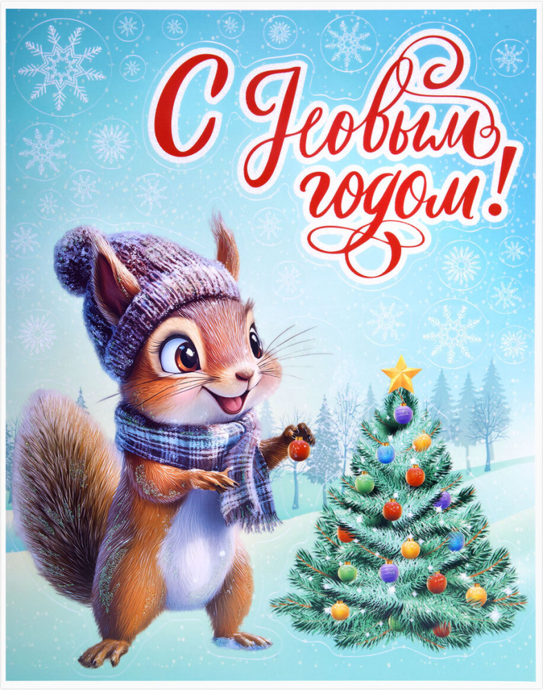 Украшение для окон и стекла — это отличный и недорогой способ украсить домашний или офисный интерьер к новогодним праздникам. Такой декор наполнит комнату волшебной атмосферой и подарит праздничное настроение. Изделие с изображением белочки и нарядной елочки представляет собой наклейку, изготовленную из поливинилхлорида (ПВХ). Наклейка размером 30×38 см декорирована серебристым глиттером. |