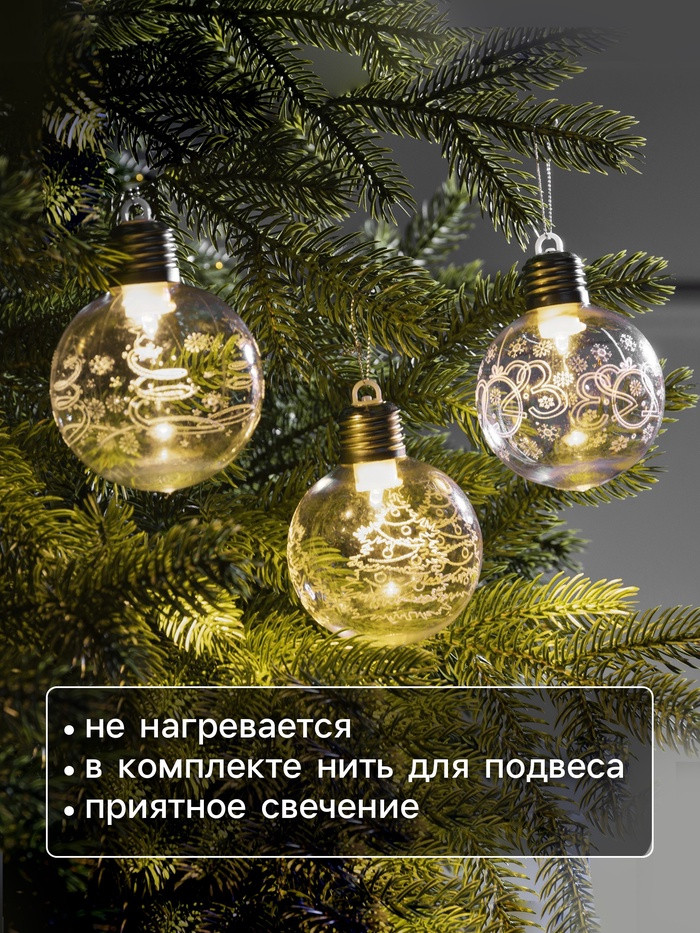 Набор ёлочных шаров с подсветкой — это волшебное украшение, которое превращает вашу ёлку в сияющее произведение искусства. Каждый шар мягко мерцает изнутри, создавая уютную атмосферу праздника и подчёркивая красоту новогоднего декора. Тёплое свечение придаёт интерьеру ощущение сказки. Эти шары станут не только эффектным украшением ёлки, но и прекрасным подарком, наполняющим дом теплом, светом и настроением Нового года. |