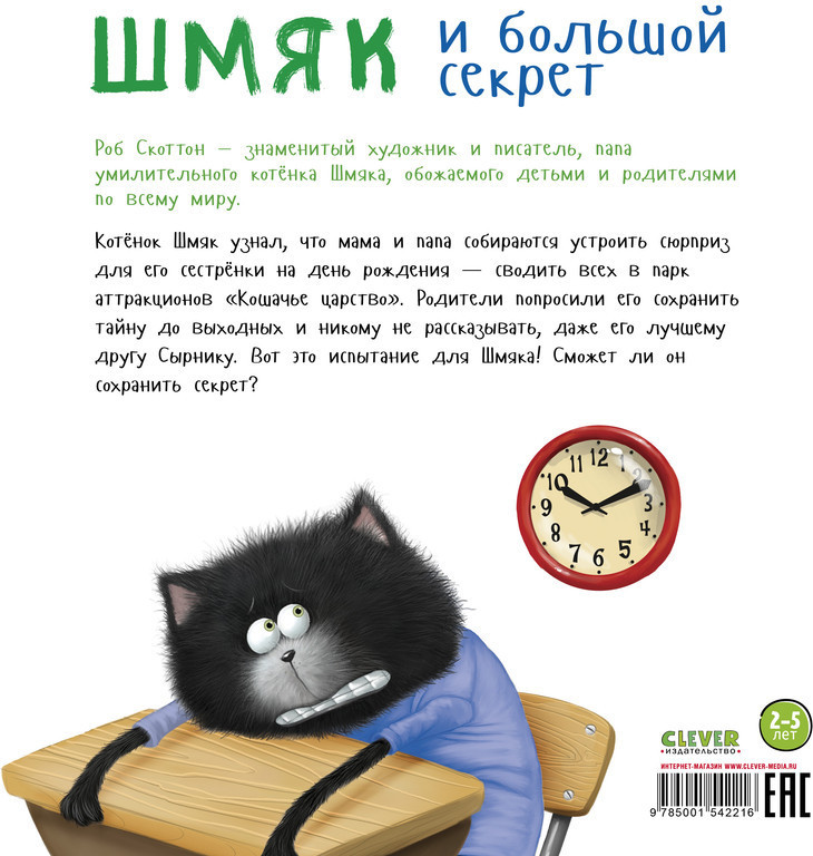💳 Оплатить за товар можно при получении 🇰🇿 Есть бесплатная доставка по Казахстану от 1 дня 🎁 Копите бонусы с каждой покупки Серия: Котенок Шмяк Совершенно случайно котенок Шмяк узнал, что мама и папа готовят для его младшей сестренки сюрприз на день рождения. Они решили всей семьей съездить в самый лучший парк аттракционов «Кошачье царство». Родители попросили котенка сохранить это в секрете и не рассказывать никому, даже своему лучшему другу Сырнику. Шмяк и не думал, что хранить тайны так сложно! Каждый день он был сам не свой, Сырник даже начал подозревать, что со Шмяком что-то не так. Но когда Шмяк увидел, как его сестренка радуется, он понял, что не зря хранил тайну. |