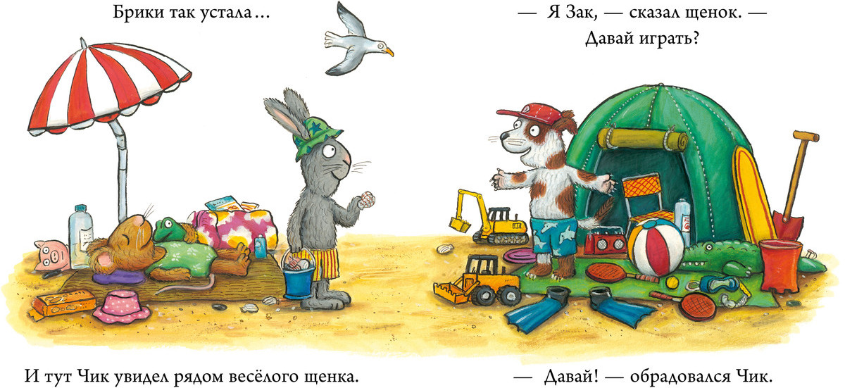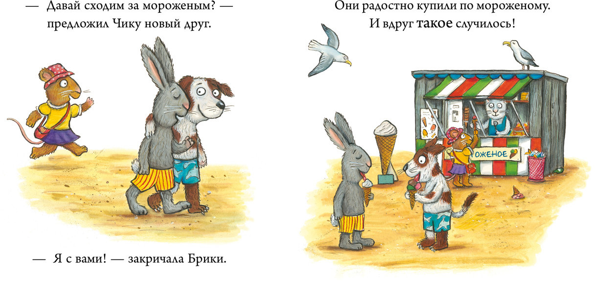 В данный момент этот товар отсутствует в продаже. Возможно, у нас найдется аналогичный или похожий товар здесь. Очень добрая история о том, как важно в любой ситуации оставаться верным другом. Чик и Брики пошли на море купаться, загорать и лепить из песка куличики. Они расстелили полотенца, достали игрушки и бутылки с водой. Они набрали ведёрко ракушек. И выкопали ямку в песке. Брики так устала...И тут Чик увидел рядом весёлого щенка. Когда у Чика появился новый приятель, Брики показалось, что про неё совсем забыли. Бедная Брики!
