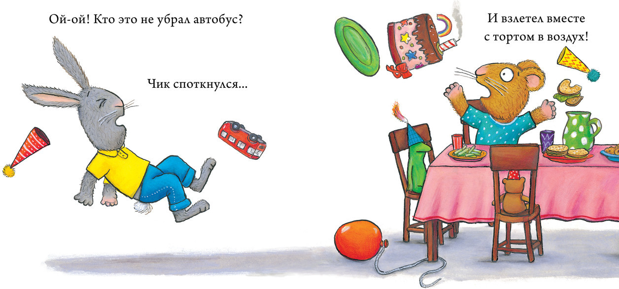 Эта новая веселая и поучительная история научит малышей находить выход из трудных ситуаций, а чудесные иллюстрации захочется рассматривать снова и снова. Сегодня у Брики день рождения. Чик приготовил для нее красивый торт, но, когда нес его к праздничному столу, поскользнулся и уронил. Вот беда! Как же все исправить? У Чика есть одна идея. Компактный формат удобен для маленьких ручек, а благодаря качественному твердому переплету книга прослужит долго. |