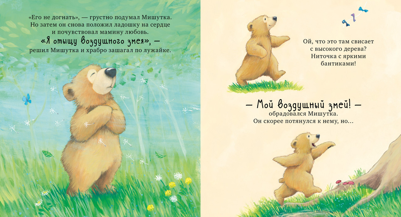 Книга «Я люблю тебя всем сердцем» — это сказка о безграничной любви между мамой и ребенком. Это история про маленького Мишутку, у которого все идет не так как он бы хотел: сначала малыш сломал любимый мамин цветок, потом весь испачкался, а вдобавок еще и потерял воздушного змея. А что, если мама его разлюбит?! А еще наш взрослый малыш медвежонок Мишутка скоро пойдет в детский сад, и разлука с мамой и привычным образом жизни, а также с любимыми игрушками его пугает. Мама научит его, как пронести свою любовь через долгий день разлуки, ведь она всегда будет рядом.   |