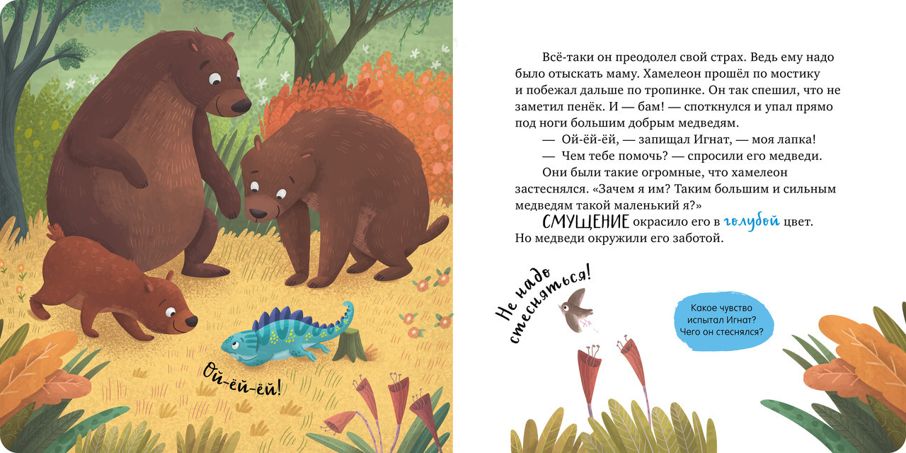 💳 Оплатить за товар можно при получении 🇰🇿 Есть бесплатная доставка по Казахстану 🎁 Копите бонусы с каждой покупки Книга «Побеждаю страхи» идеально подойдет для первого знакомства ребенка с эмоциональной сферой. Она создана на основе бестселлера Елены Ульевой «Как победить страхи» и адаптирована специально для самых маленьких. Хамелеон Игнат — очаровательный малыш, который меняет свой цвет в зависимости от настроения. Как и ваш ребенок, он испытывает различные эмоции, и у него, как и у всех, есть свои страхи: темноты, высоты, остаться в одиночестве или выступать перед большим количеством людей. На примере Игната ваш малыш научится понимать, чего боится и как с этим справиться. Эмоциональный интеллект — это основа будущих побед и успехов вашего ребенка. Развивать его с детства поможет серия «Первые эмоции». С книгой «Побеждаю страхи» ребенок станет увереннее в себе, разовьет доверие к миру и чувство безопасности. |