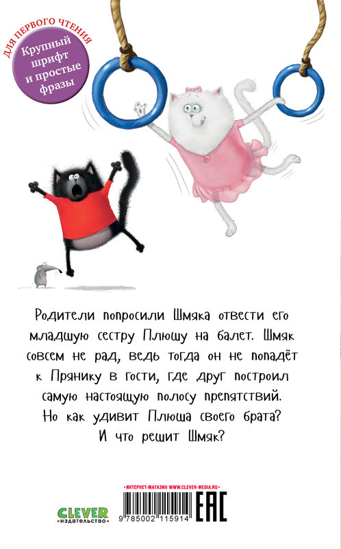 Серия: Котенок Шмяк Любимые истории про котенка Шмяка теперь и в мягкой обложке! Родители попросили Шмяка отвести его младшую сестру Плюшу на балет. Шмяк совсем не рад, ведь тогда он не попадёт к Прянику в гости, где друг построил самую настоящую полосу препятствий. Но как удивит Плюша своего брата? И что решит Шмяк? |