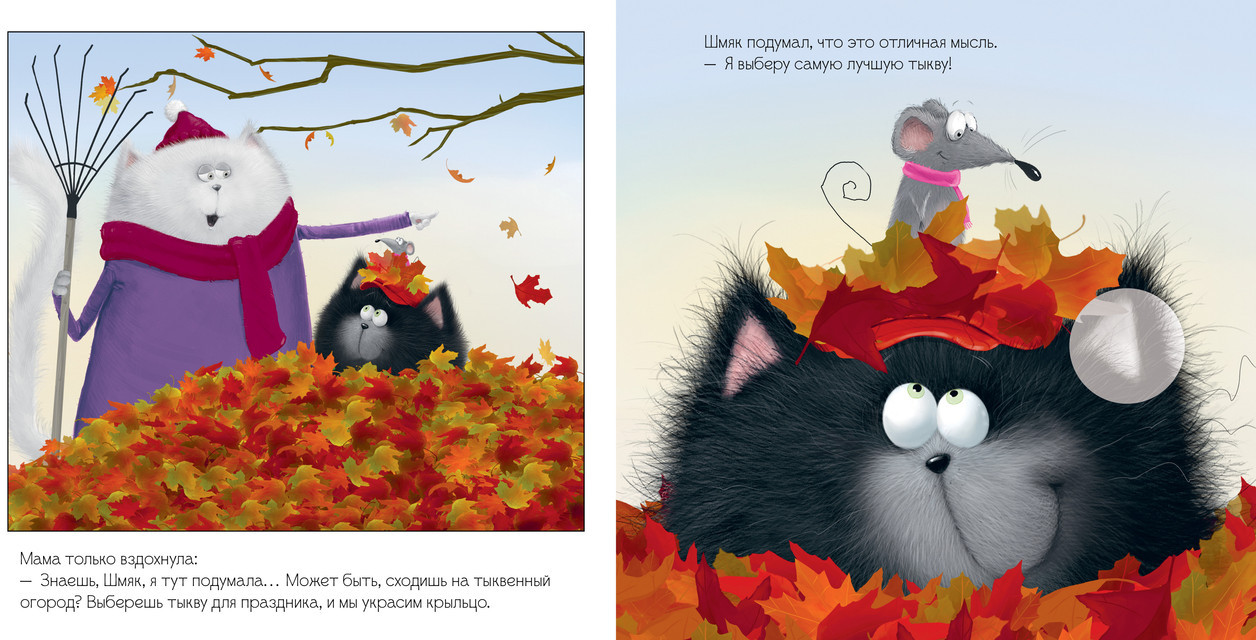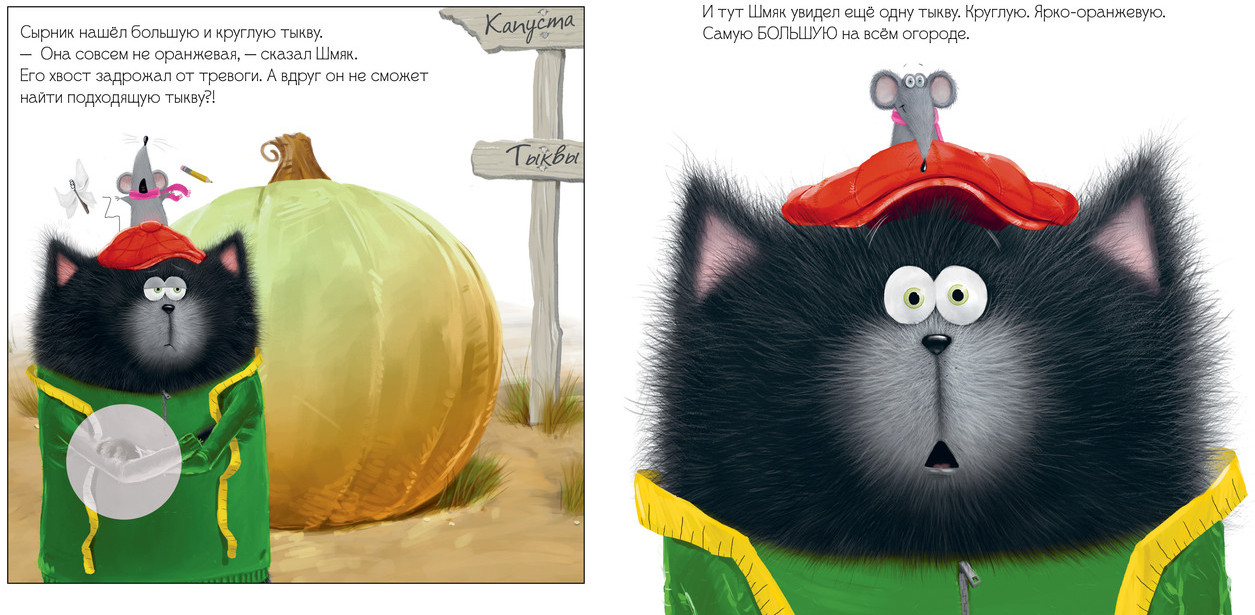 Серия: Книжки-картинки с наклейками Шмяк и Сырник отправляются на тыквенный огород, чтобы выбрать самую лучшую тыкву для праздника. Но оказалось, найти её не так-то просто. И ещё сложнее доставить домой! Все дети обожают наклейки, поэтому мы добавили 20 СТИКЕРОВ, которые малыш должен разместить на страничках книги. «Котенок Шмяк и большая тыква» — сказка о приключениях любимого во многих странах героя, хорошая детская литература и прекрасное первое чтение для малышей от 2 лет. Для детей, которые читают сами, осенняя история, в которой кот выбирает тыкву, подойдет для самостоятельного чтения. |