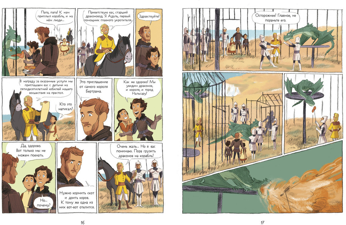 💳 Оплатить за товар можно при получении 🇰🇿 Есть бесплатная доставка по Казахстану 🎁 Копите бонусы с каждой покупки Комикс «Драконы Нальсары. Драконий остров» — это захватывающая история о древней магии, призвании и настоящей дружбе для любителей фэнтези от 7 лет. На страницах книжки ждут волшебные приключения, отважные герои-дети, сказочные существа, опасности, подвиги и, конечно, много-много картинок. Шам и Нина живут на загадочном Драконьем острове вместе с отцом, старшим драконоводом королевства Тенирун. Однажды дети вызываются сопровождать молодых драконов ко двору короля, не подозревая, как сильно эта поездка изменит их жизнь... Эта детская книжка обязательно понравится подросшим любителям сказок и особенно тем, кто любит комиксы. |