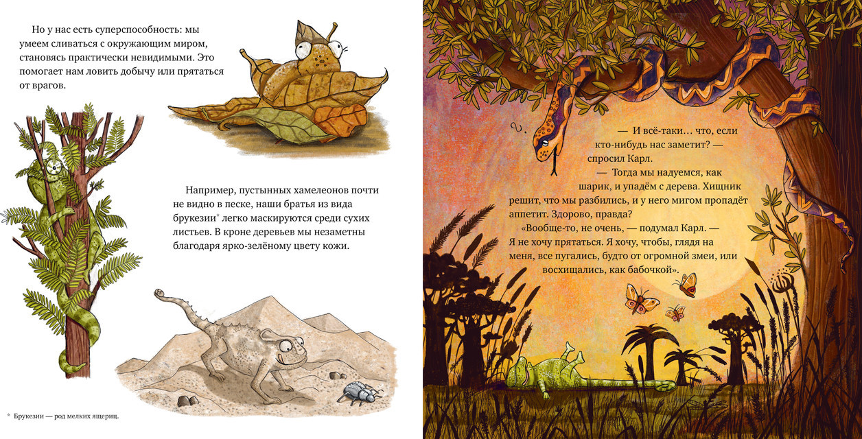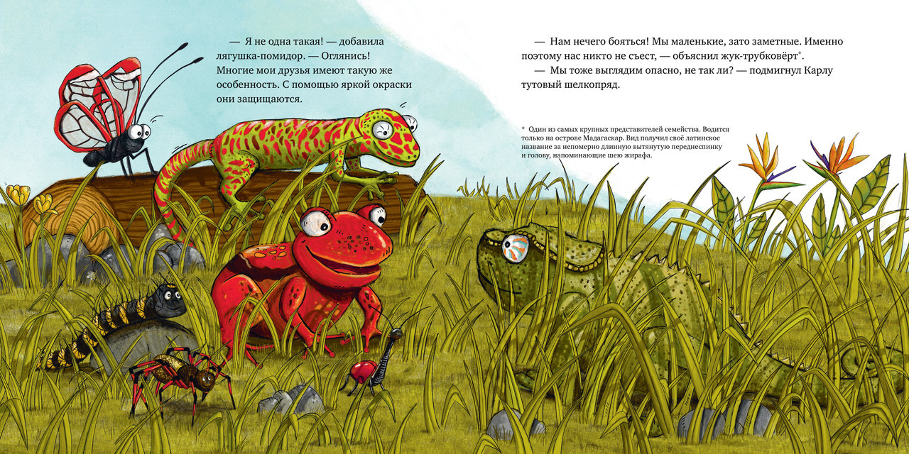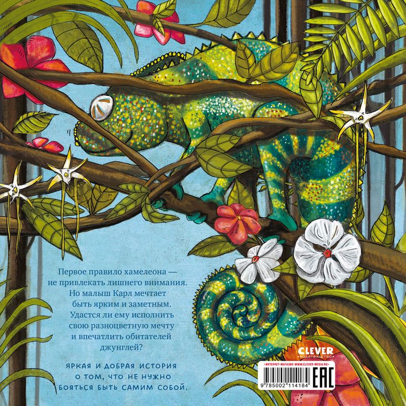 Серия: Книжки-картинки Яркая и добрая история о том, что не нужно бояться быть самим собой. Первое правило хамелеона - не привлекать лишнего внимания. Но малыш Карл мечтает быть ярким и заметным. Удастся ли ему исполнить свою разноцветную мечту и впечатлить обитателей джунглей? |