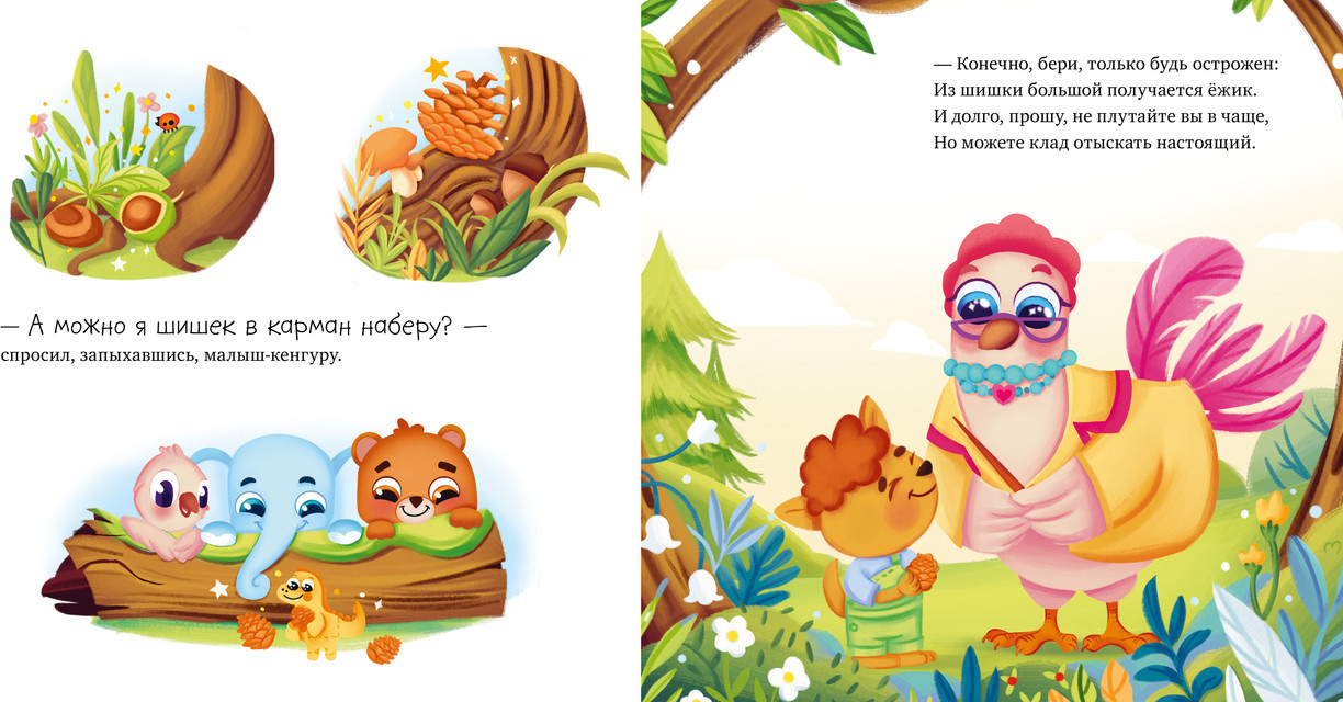 Серия: Книжки-картинки Эта забавная сказка в стихах не только поможет и детям, и взрослым преодолеть страх и волнение перед разлукой, но и расскажет, как весело и интересно бывает в детском саду! Сегодня у Слоненка важный день! Немного волнуясь, oн впервые пришел в детский сад. Воспитательница-курочка радостно встретила его и познакомила с другими ребятами. Зверята вместе делали зарядку, пели и танцевали, рисовали хвостиками пейзажи, сладко спали в тихий час, гуляли в лесу и искали шишки, учили буквы и цифры, а ещё читали волшебные книжки. |