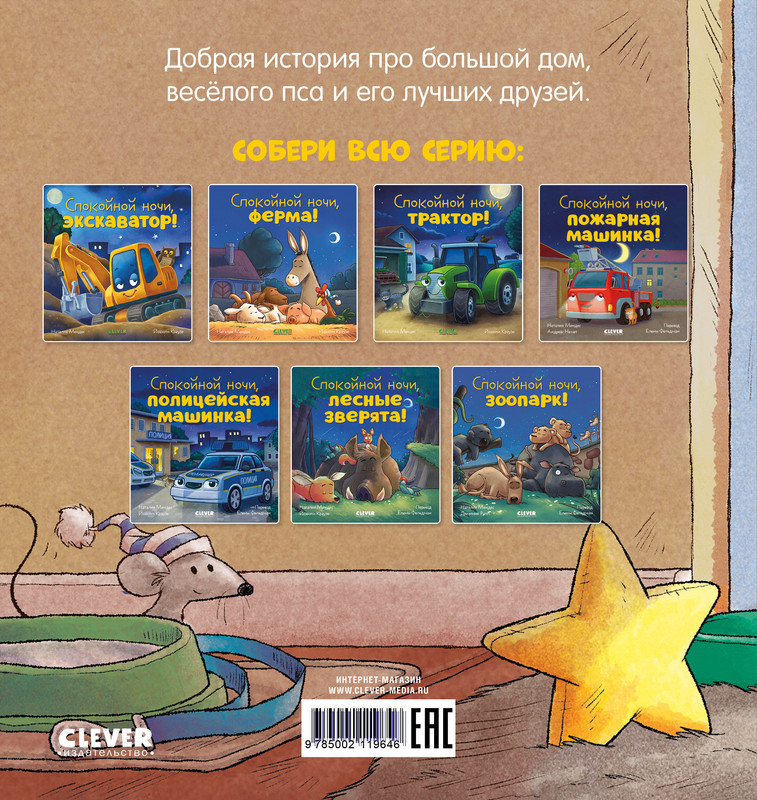 Серия: Сказка на ночь Сонная сказка про собаку понравится малышам и станет прекрасным убаюкивающим чтением перед сном. «Спокойной ночи, песик!» — книжка издательства clever из серии «Сказки на ночь» расскажет о жизни веселого песика. Днем он играет и гуляет со своими хозяевами и друзьями, а вечером желает всем спокойной ночи, просит хозяев почесать ему животик, сворачивается клубочком и сладко засыпает. |