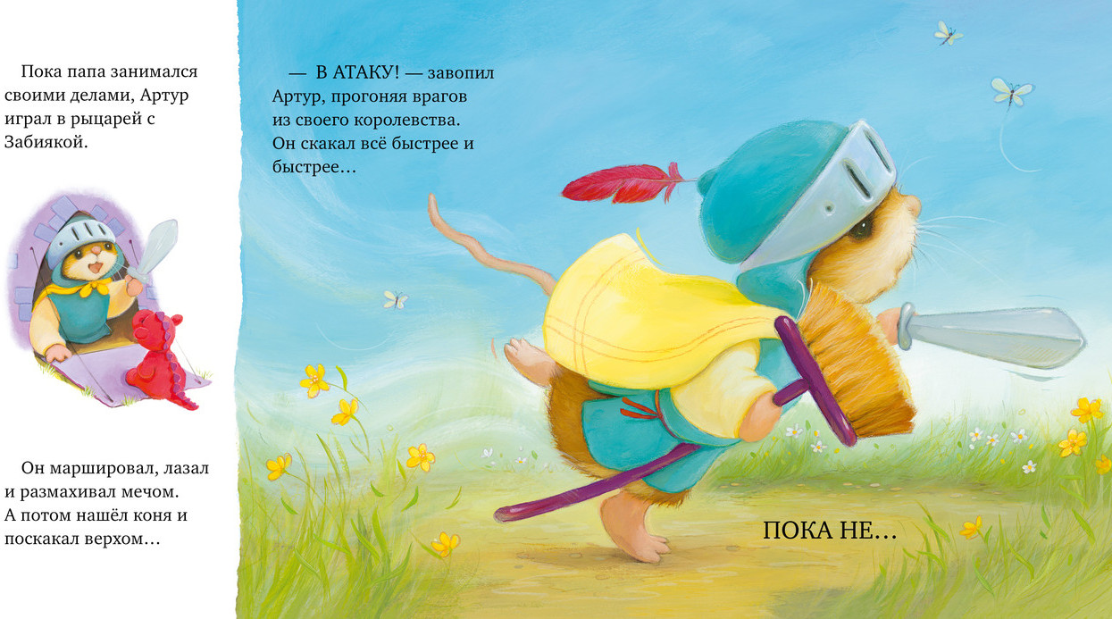 У Артура сегодня выдался трудный день: его игрушечный замок разваливается, в окрестностях завелись чудовища, а прогоняя врагов королевства, малыш спотыкается и больно падает... Все идет наперекосяк у отважного рыцаря Артура! И конечно, только папа может все исправить!
