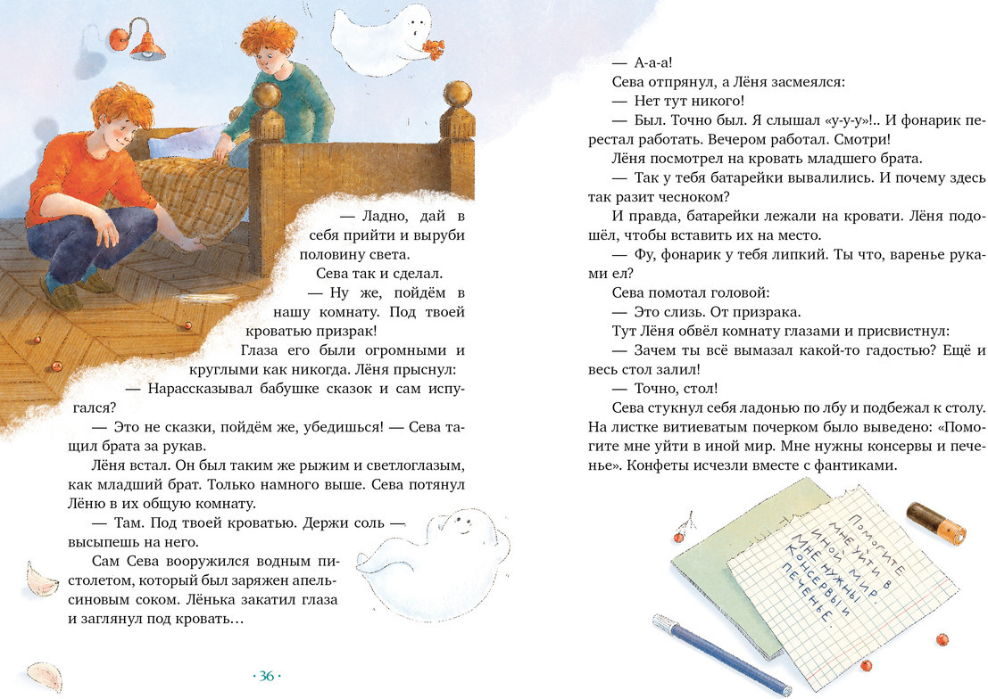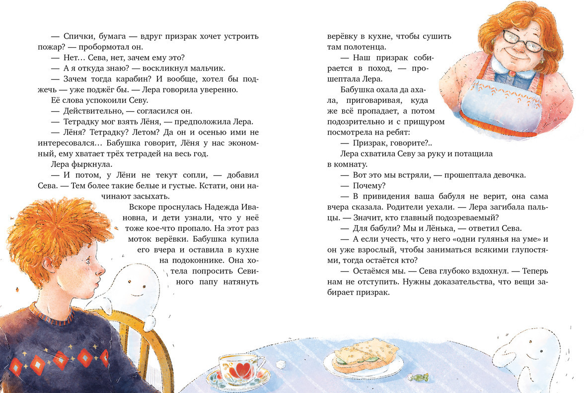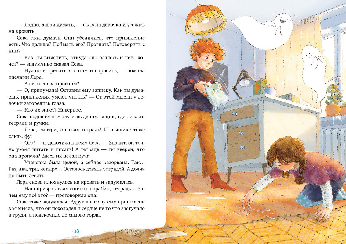«По следам привидения» написана с большим юмором и знанием детей, это качественная художественная литература, которая одинаково интересна и детям, и взрослым. Приключенческая книжка станет отличным подарком или дополнением к праздничному набору или комплекту для девочек и мальчиков, дочери, сыну, внуку или внучке 6,7, 8, 9 лет. Такой сюрприз подойдет на выпускной в детском саду, на день рождения, Новый год (НГ) и любой другой праздник. Детская книга с остроумными картинками, крупным шрифтом и комфортным объемом текста понравится девочкам и мальчикам, которые учатся в начальной школе и только приступают к первому самостоятельному чтению, а взрослые оценят не только веселые приключения героев, но и добрую мудрость, заложенную в сюжет.