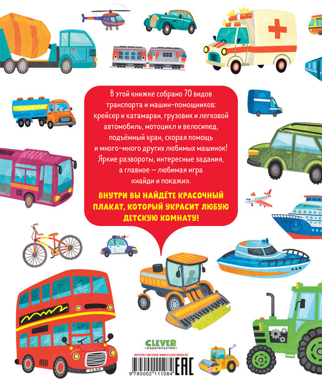 Серия: Найди и покажи Книга «Мои любимые машинки» расскажет малышам о десятках видов самого разного транспорта: самолеты и вертолеты, крохотные лодочки и огромные лайнеры, мотоциклы и двухэтажные автобусы и еще много всего! Маленькие читатели смогут вдоволь наиграться в нашу фирменную игру «найди и покажи», узнают, какие виды транспорта можно встретить на стройке, а какие — на пляже, какие машины ездят по городу, а какие — по деревне. Яркие, сочные цвета, множество интересных деталей и нескучные задания займут детей и поднимут настроение взрослым. Рассматривайте, обсуждайте, играйте, веселитесь, оттачивая важные для детей навыки и умения! Море пользы и удовольствия в одной книге! |