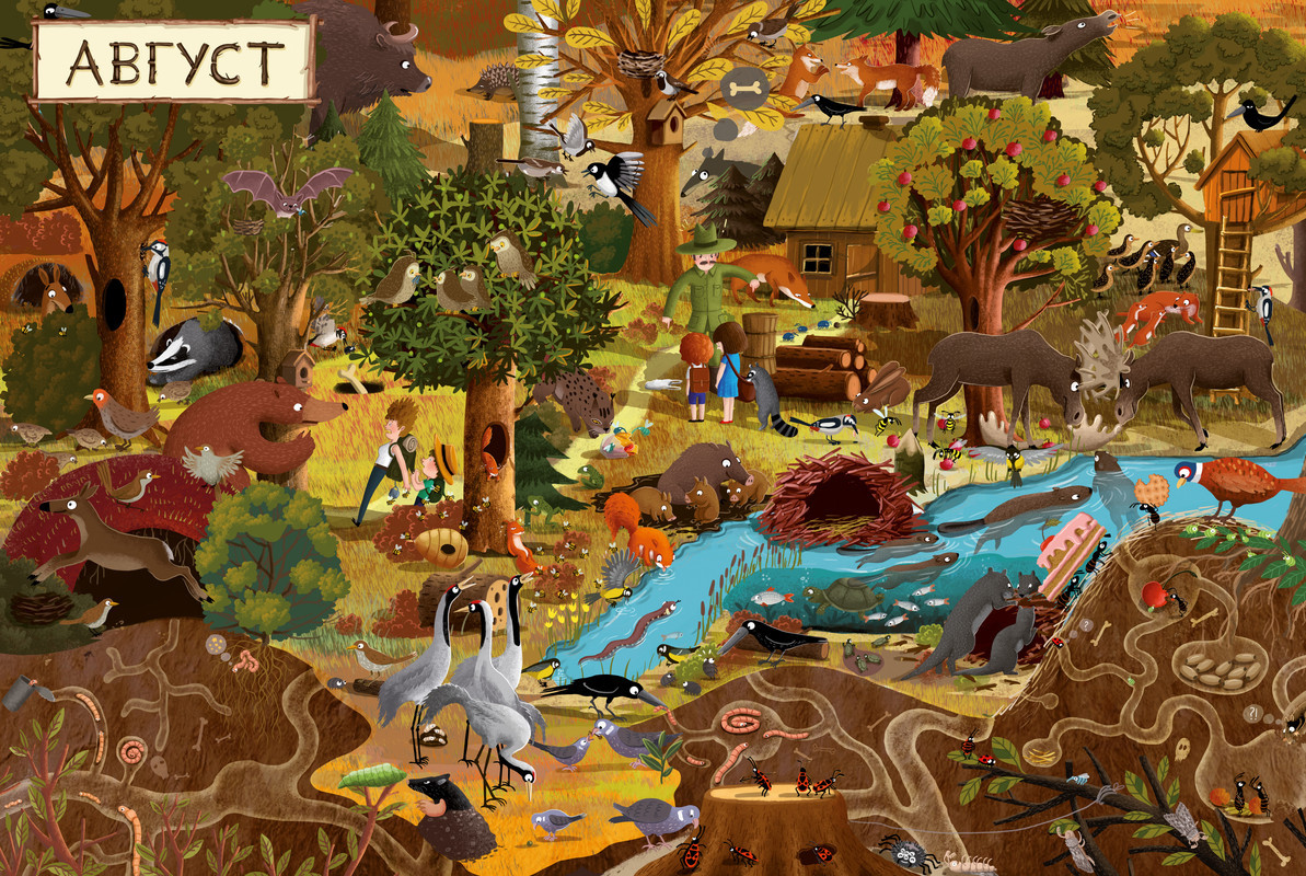 Серия: Найди и покажи Книга «Год в лесу. Найди и покажи» — это 12 разворотов, каждый из которых посвящен одному месяцу. Так вы сможете наблюдать за жизнью лесных жителей в любое время года, днем и ночью, познакомиться с повадками животных.