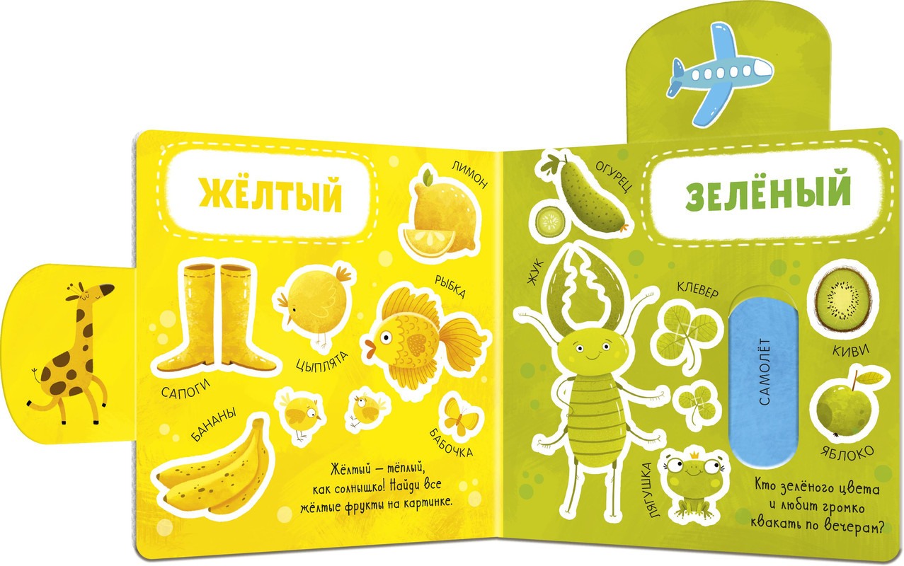 Серия: Вжух! «Вжух! Цвета» — это миниатюрная книжка-игрушка, созданная специально для маленьких детских ручек. Плотные картонные странички выдержат даже самый активный детский интерес, а яркие картинки, задания и игра с открыванием створок помогут малышу освоить цвета. Красные — помидор, клубника, пожарная машина, а что еще? А кто зеленого цвета и любит квакать по вечерам? Каждая страницы этой книжки посвящена одному цвету: рассматривайте картинки, выполняйте небольшие задания, толкайте створки и ищите внутри ответы на загадки. Книга будет интересна малышу уже с полугода. Сначала в качестве развивающей игрушки: ребенок может сам листать картонные странички, разглядывать картинки и двигать рычажки. А позже книжка станет первым пособием по изучению новых слов, предметов и явлений. |