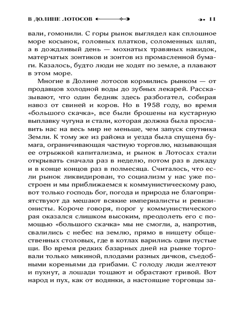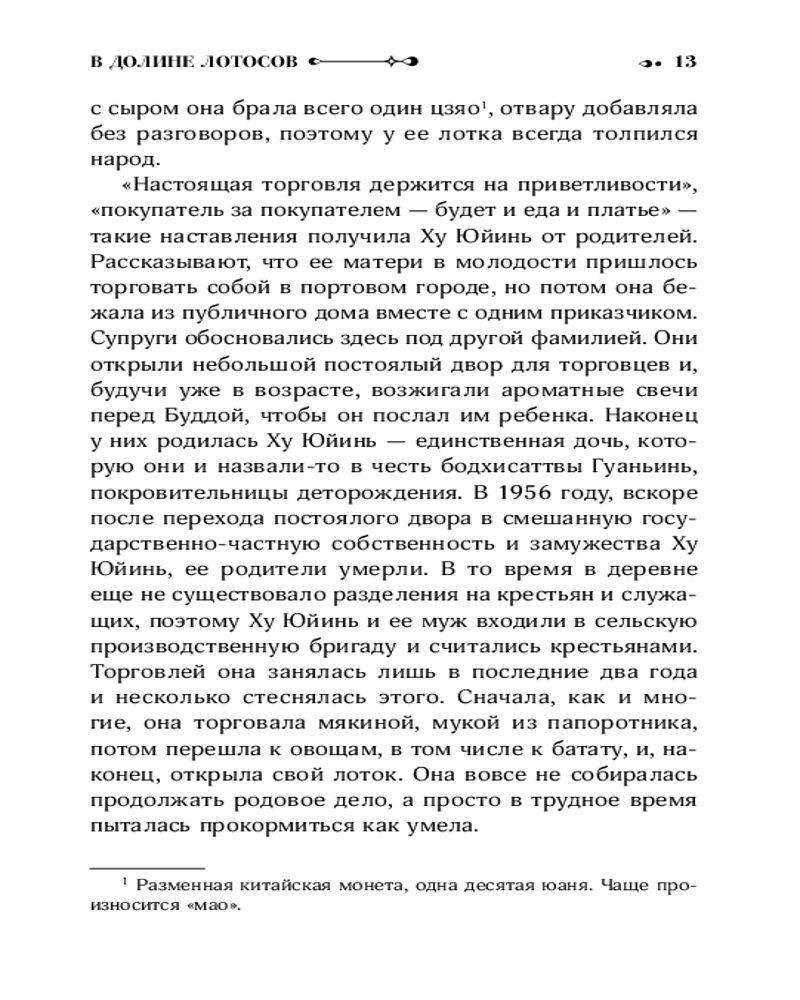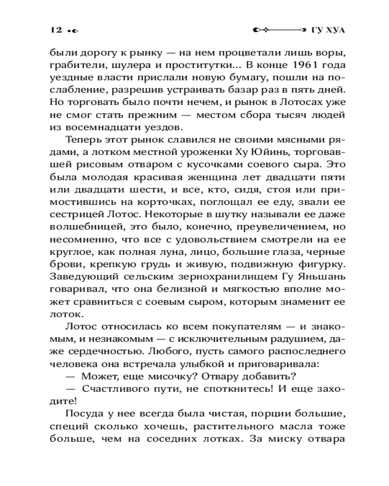 Серия: Neoclassic проза Востока Жизнь села с поэтичным названием Лотосы, главными достопримечательностями которого являются древовидные китайские гибискусы и воскресный базар, куда съезжаются люди из окрестных сел, резко меняется с приходом новой власти. Перемены, вызванные «культурной революцией», затронули всех сельчан: для кого-то они стали билетом в новую жизнь, а для кого-то — трудным жизненным испытанием. |