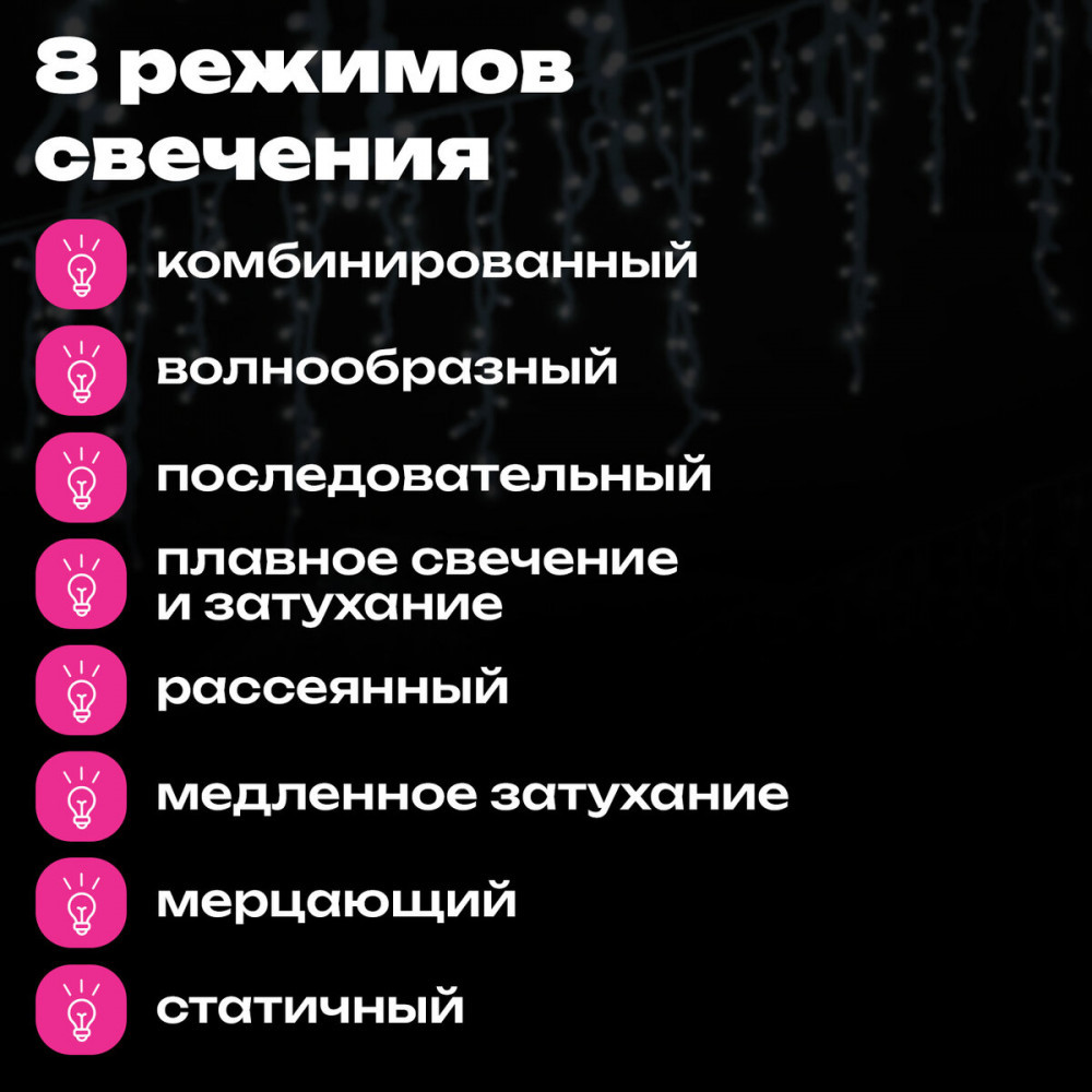 Золотая сказка Электрогирлянда «Бахрома»новинка В данный момент этот товар отсутствует в продаже. Возможно, у нас найдется аналогичный или похожий товар здесь. Электрогирлянда «Бахрома» — один из самых популярных видов гирлянд сегодня. Мягкий, но насыщенный свет этих украшений помогает создать уютное свечение в помещении. Гирлянда представляет собой светодиоды, соединенные между собой электрическим проводом. Тип конструкции электрогирлянды — «Бахрома». Гирлянда «Бахрома» состоит из горизонтального провода, по всей ширине которого на равном расстоянии друг от друга располагаются вертикальные нити различной длины со светодиодами. Такой тип гирлянды чаще всего используют для декорирования оконных проемов, стен, потолков, витрин, карнизов и прочего. Длина рабочей части гирлянды составляет 25×0,7 м. |