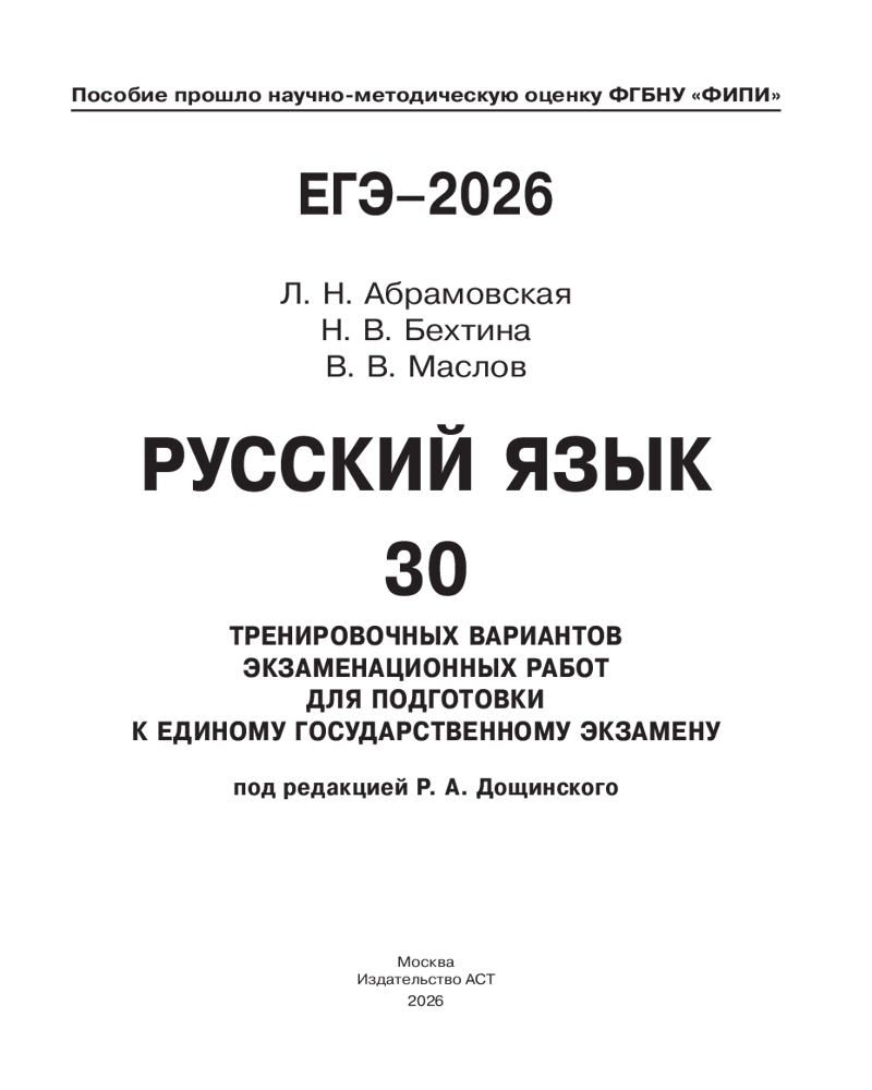 ЕГЭ-2026. Русский язык. 30 тренировочных вариантов экзаменационных работ. 800 заданий+45