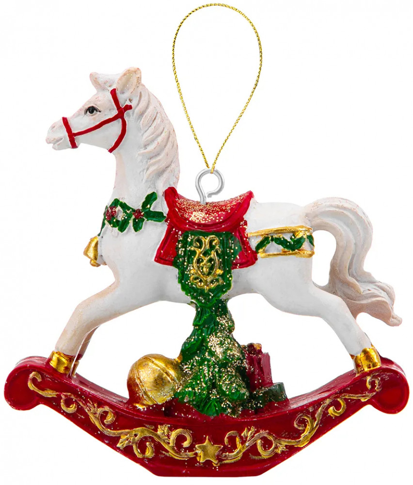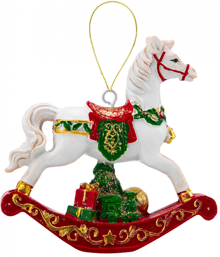 Декоративная фигурка Elan Gallery «Лошадка-качалка с подарками» размером 7,5×2×7 см способна преобразить любое помещение. Статуэтка в виде белой лошади с красным седлом выполнена из полирезина, имеет подвес из верёвочки золотого цвета. Украшена мелкими блёстками. Полирезин — это современный материал, который славится своей лёгкостью, устойчивостью к влаге и солнечным лучам. Он не выделяет вредных веществ и не имеет запаха. Полирезин легко поддается обработке, поэтому изделия из него славятся своей реалистичностью и проработанными деталями. Подвесная фигурка выполнена в нежных белых и розовых цветах, украшена мелкими блёстками. Привнесите эстетику в интерьер своей квартиры или дачи с помощью красивых мелочей! |