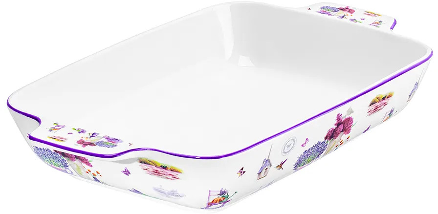 Шубница из серии «Лаванда» от Elan Gallery предназначена для эстетичной сервировки вашего стола. Размер изделия — 32×19×5 см, внутренний размер — 26×18,5×5 см, объём — 1,7 литра. Выполнена из фарфора нового поколения new bone china, сочетающего в себе изящность и высокую прочность. Такие изделия легко отмываются, поэтому сохраняют привлекательный вид и практичны в использовании. Плотная структура материала позволяет посуде дольше сохранять температуру блюд. От других видов костяного фарфора new bone china отличается большей экологичностью в производстве. Серия украшена нежным принтом на тему Прованса — французской провинции, которая славится своими лавандовыми полями и красивыми пейзажами. Изображение пышных букетов лаванды и гортензии позволит окунуться в атмосферу тепла, гармонии и южного солнца, не покидая вашей кухни или столовой!