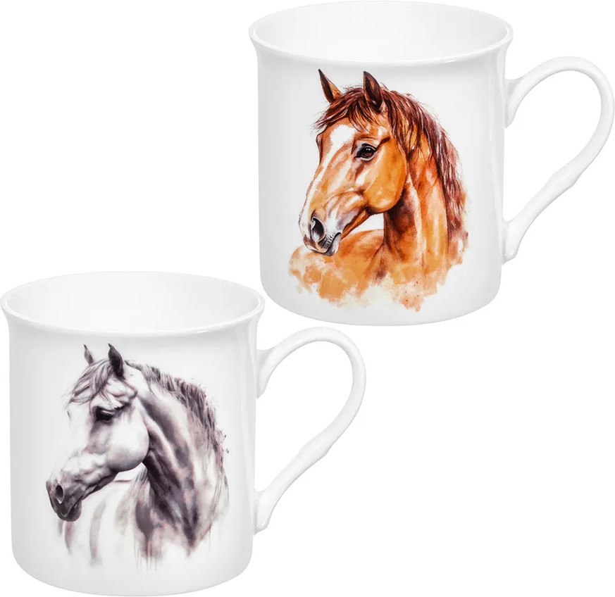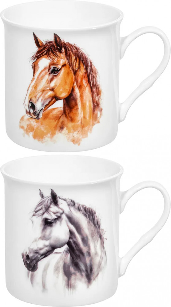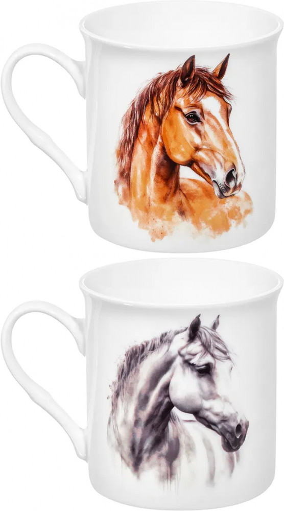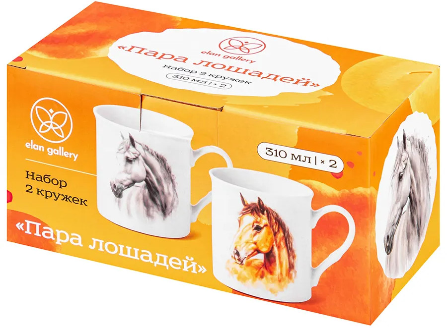 Набор 2 кружек «Пара лошадей» от Elan Gallery предназначен для эстетичной сервировки вашего стола. Размер каждой ёмкости — 11,5×8,5×9 см, объём — 310 мл. Выполнены из высококачественного белого фарфора. Он не впитывает цвет напитков и легко отмывается, благодаря чему надолго сохранит свою белизну. Поверхность изделий украшают рисунки в виде голов лошадей — гнедой и белой. Изображения выполнены в лёгкой акварельной манере. Образ лошади символизирует энергию и свободу. Он отражает силу, красоту и неукротимый дух, вдохновляя на преодоление преград. Кофейные кружки помогут вам провести множество приятных завтраков с капучино и латте, а также уютные чайные вечера с конфетами, вафлями и другими сладостями.