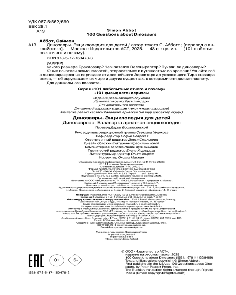 Серия: 101 любопытных отчего и почему Какого размера брахиозавр? Чем питался велоцираптор? Пукали ли динозавры? |