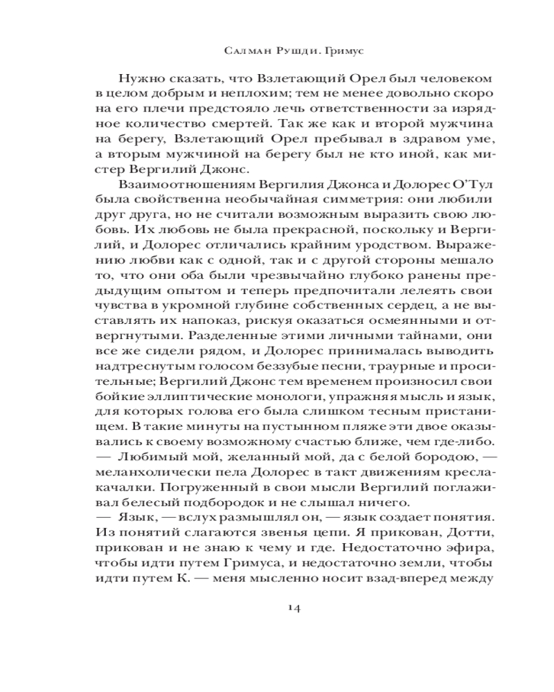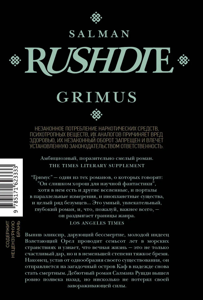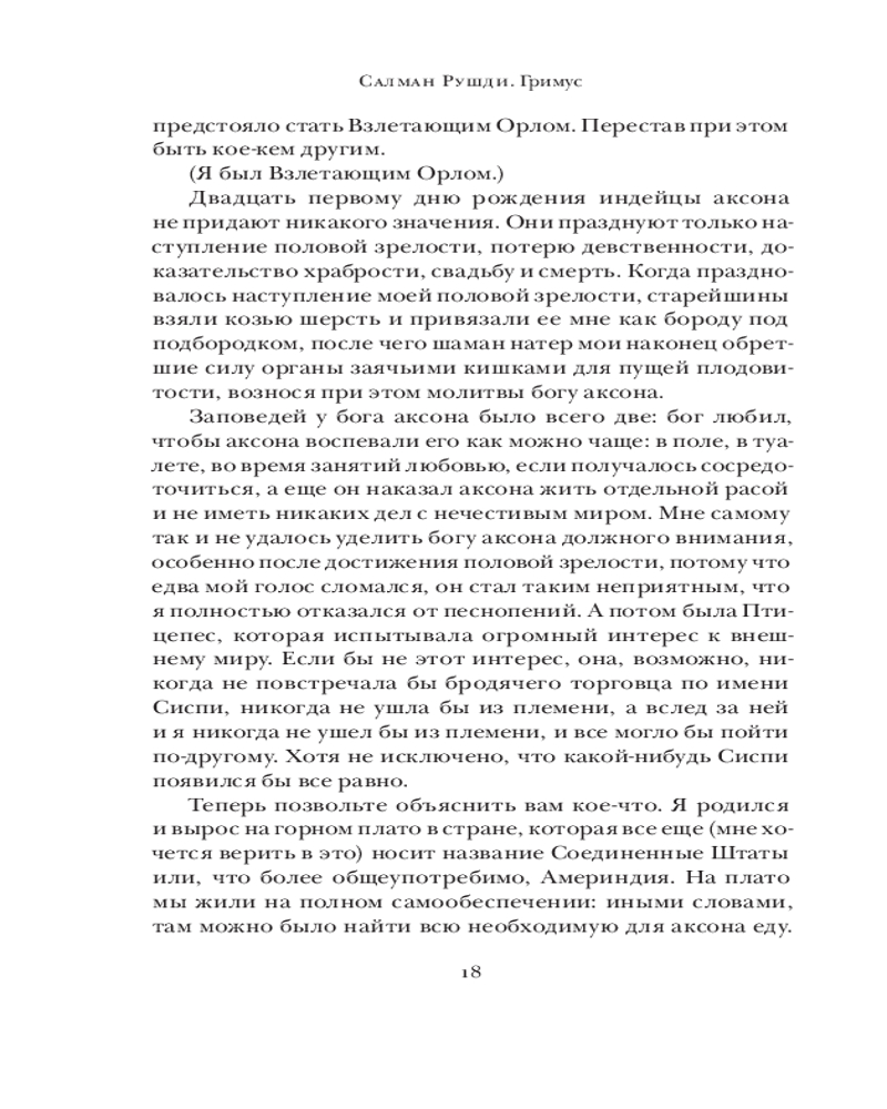💳 Оплатить за товар можно при получении 🇰🇿 Есть бесплатная доставка по Казахстану 🎁 Копите бонусы с каждой покупки Серия: Весь Салман Рушди Взлетающий Орел, молодой индеец из племени аксона, выпивает эликсир бессмертия и пускается в бесцельные странствия по миру. Однажды, окончательно потеряв связь с окружающей его жизнью, он решает найти таких же, как он сам. И в возрасте семисот семидесяти семи лет оказывается на острове Каф, где бессмертные создали свою версию человечества. |