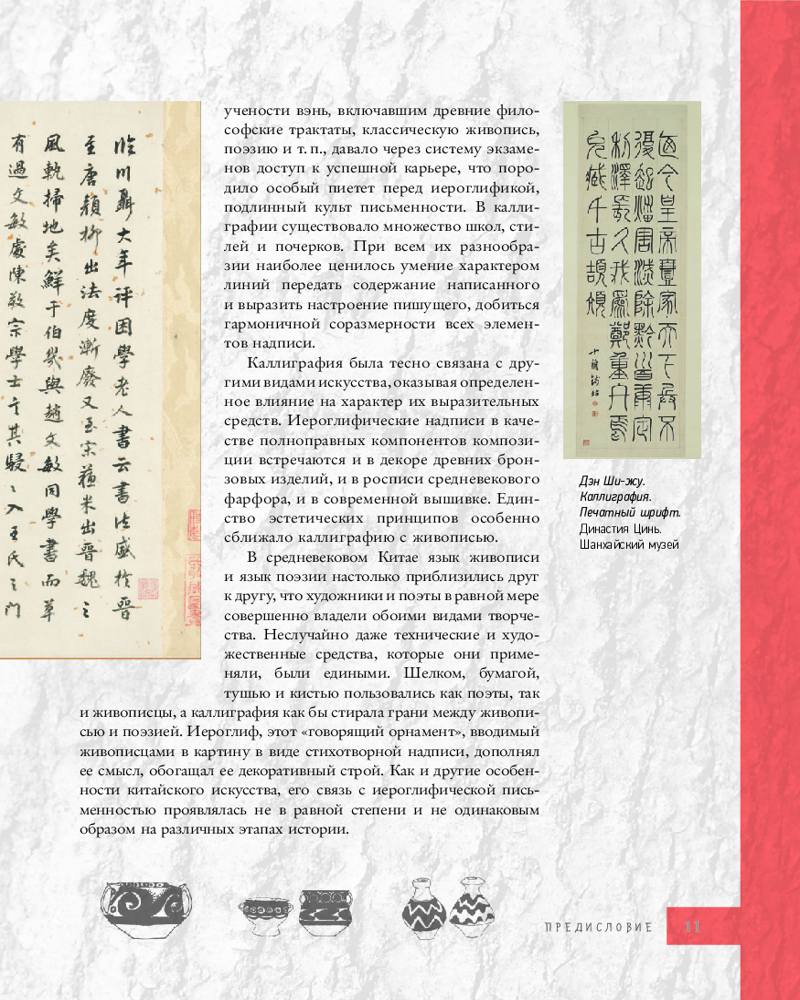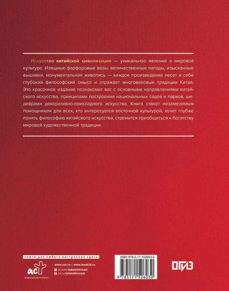 Серия: Искусство. Подарочная энциклопедия Искусство китайской цивилизации — уникальное явление в мировой культуре. Изящные фарфоровые вазы, величественные пагоды, изысканные вышивки, монументальная живопись — каждое произведение несет в себе глубокий философский смысл и отражает многовековые традиции Китая. Это красочное издание познакомит вас с основными направлениями китайского искусства, принципами построения национальных садов и парков, шедеврами декоративноприкладного искусства. Книга станет незаменимым помощником для всех, кто интересуется восточной культурой, хочет глубже понять философию китайского искусства, стремится приобщиться к богатству мировой художественной традиции. |