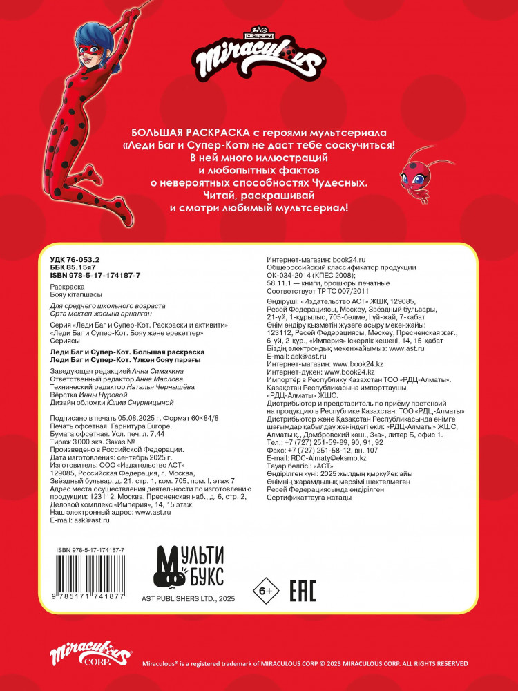 Серия: Леди Баг и Супер-Кот. Раскраски и активити Раскраска с героями знаменитого мультсериала! Большой формат для максимального удобства! |