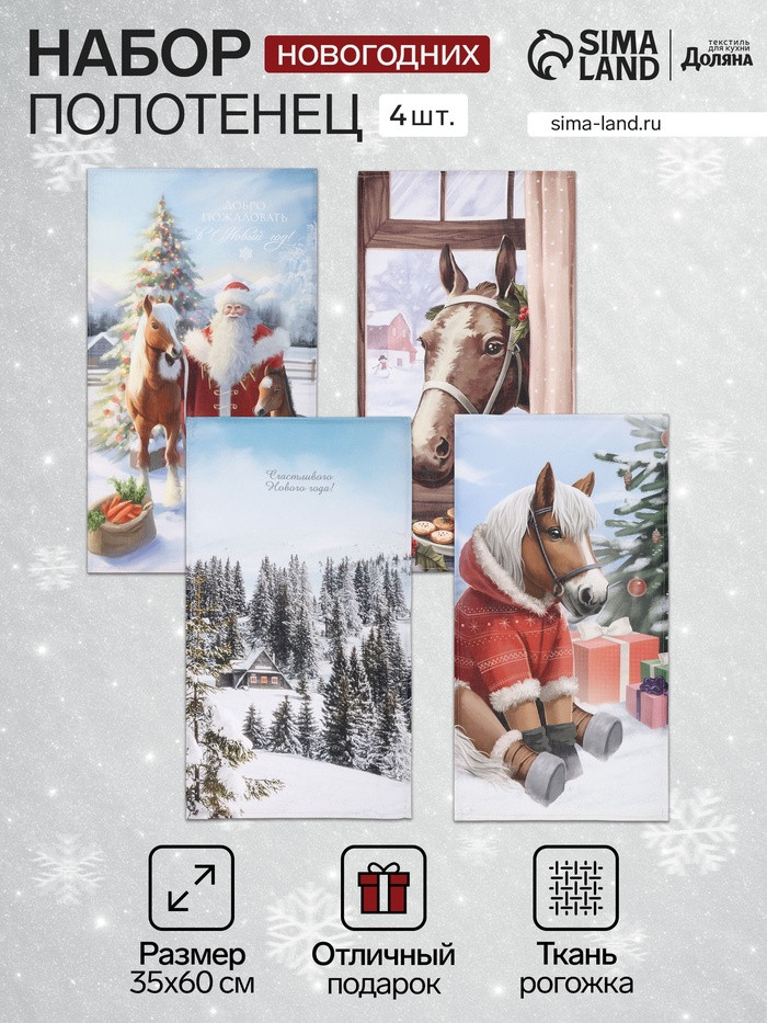 Доляна Набор полотенец кухонных «Лошадь»новинка -25%