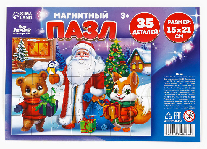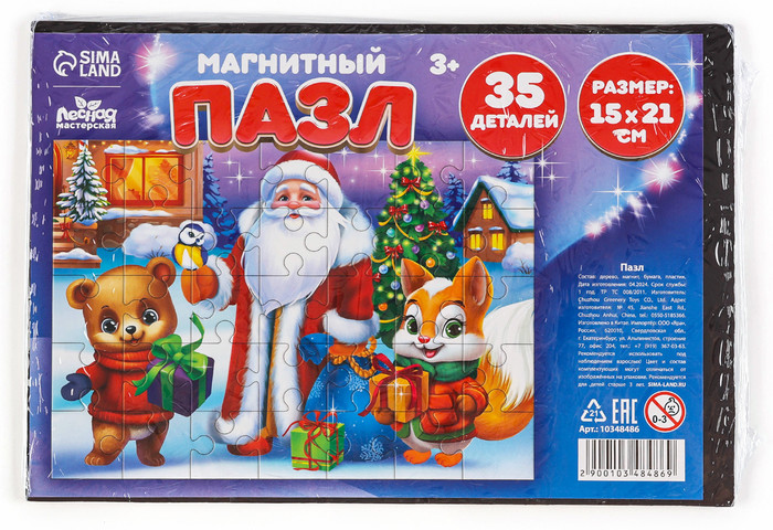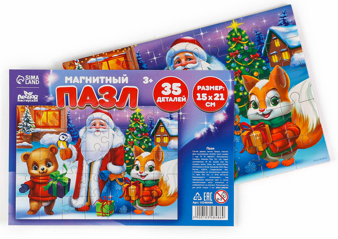 Лесная мастерская Пазл для детей магнитный деревянный «Новый год! Звери»новинка -25%