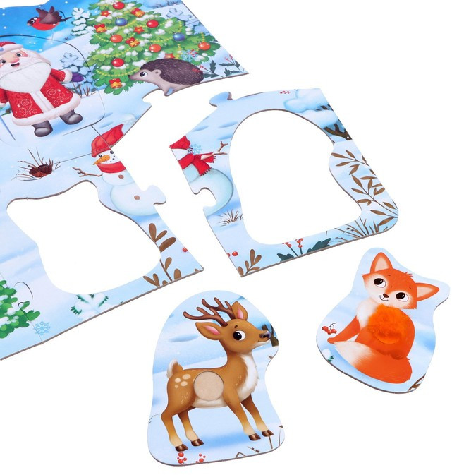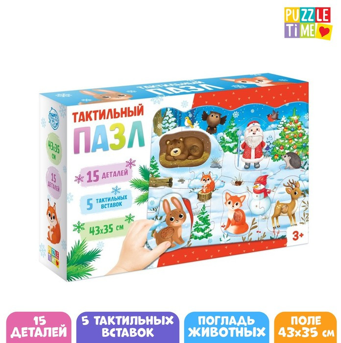 Puzzle Time Пазл с тактильными вставками «Новый год в лесу»новинка В данный момент этот товар отсутствует в продаже. Возможно, у нас найдется аналогичный или похожий товар здесь. Пазлы с тактильными вставками — это 15 деталей, из которых ребёнок соберёт 5 разных пазлов и познакомится с животными зимнего леса. Игра поможет развить усидчивость, координацию и мелкую моторику рук, а также научит находить связь между частью и целым. Яркие картинки поднимут настроение и надолго привлекут внимание малыша, а также поспособствуют развитию цветового и зрительного восприятия, внимательности и логического мышления. |