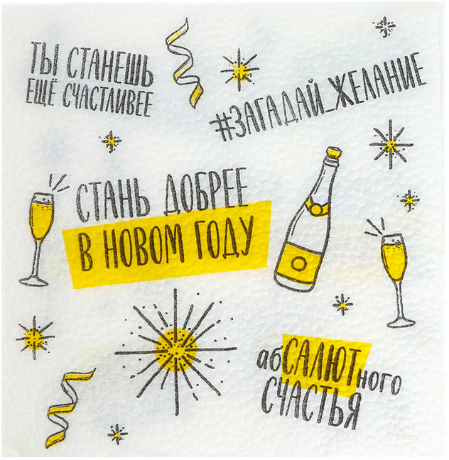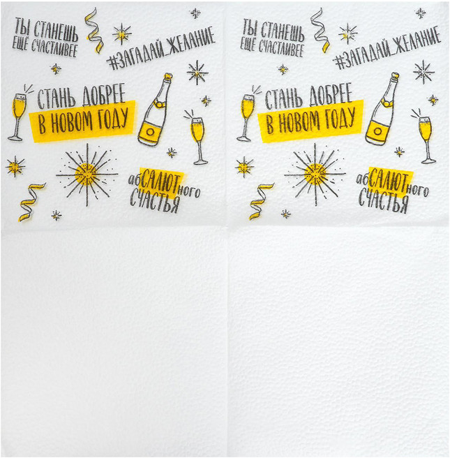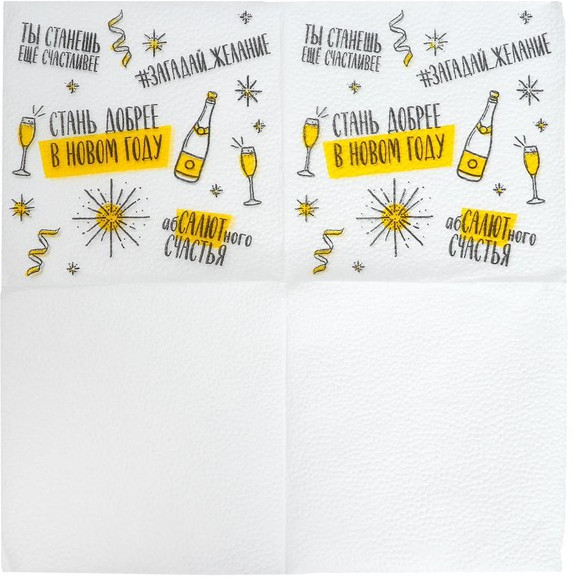 Бумажные салфетки — это стильный и практичный элемент праздничного стола, создающий атмосферу уюта и волшебства. Салфетки не только украсят праздничное застолье, но и обеспечат чистоту и комфорт во время трапезы. Идеальны для домашнего ужина, корпоративного праздника или детского утренника — добавьте новогоднего настроения в каждый момент! |