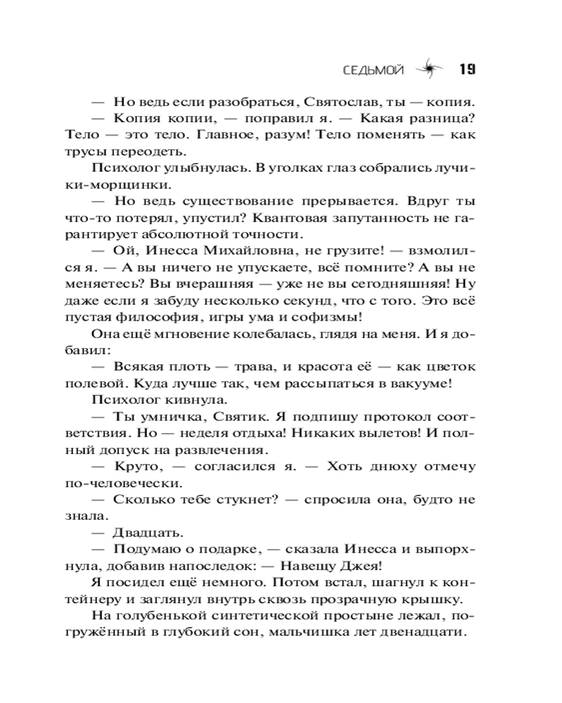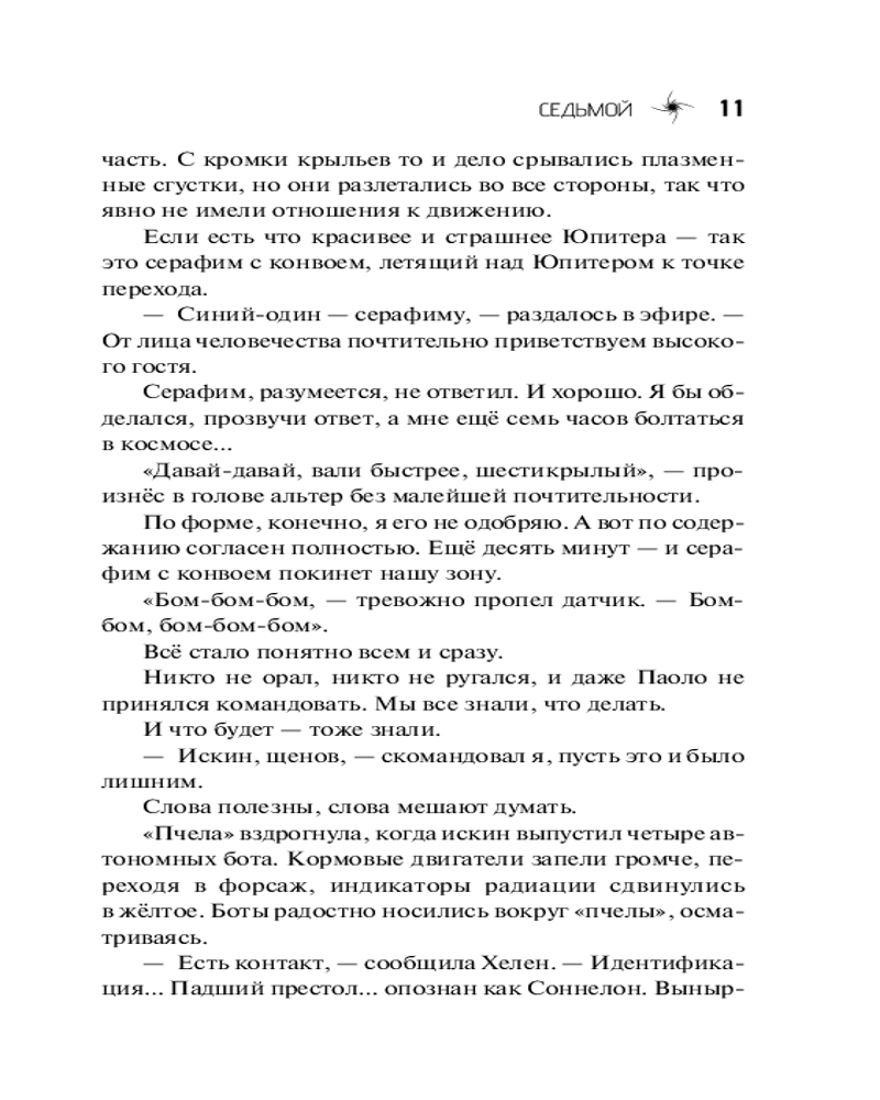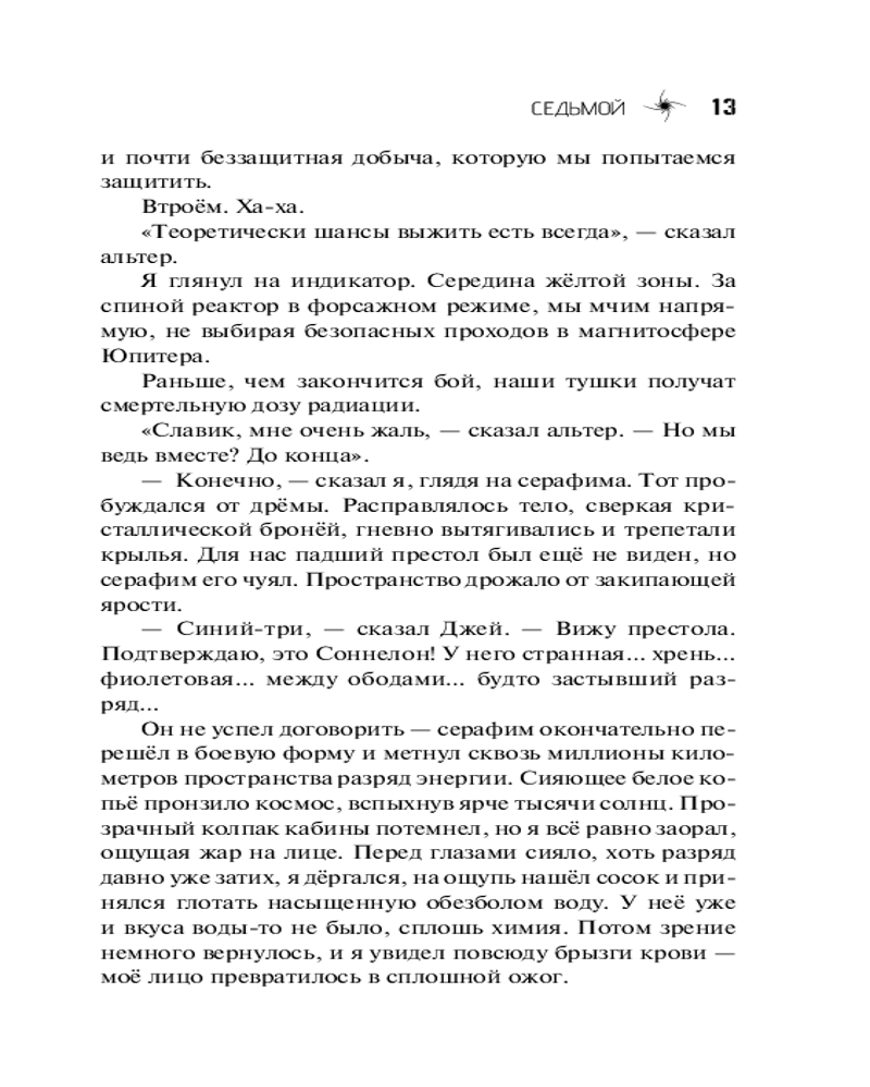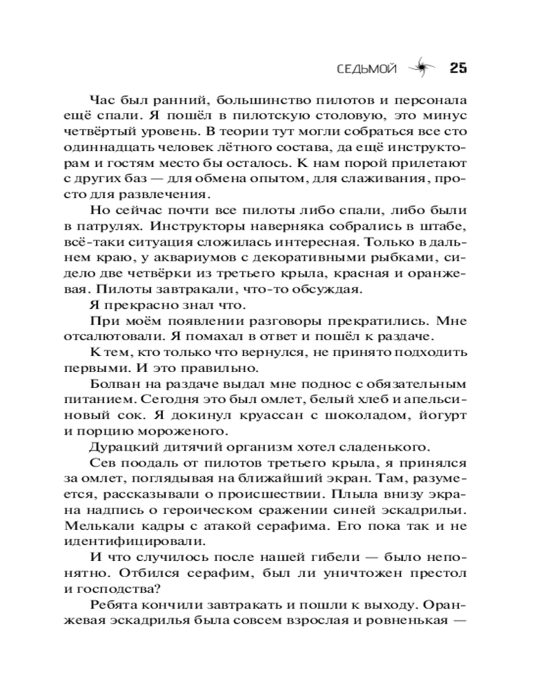 Серия: Книги Сергея Лукьяненко «Седьмой» — роман, открывающий новый цикл Сергея Лукьяненко «Небесное Воинство». Увлекательная космическая фантастика! Это книга о космических кораблях и ангелах, о Земле и космосе, о жизни и смерти, о любви и предательстве, о детских вопросах и взрослых ответах. В общем - обо всём том, о чём только и стоит писать. |