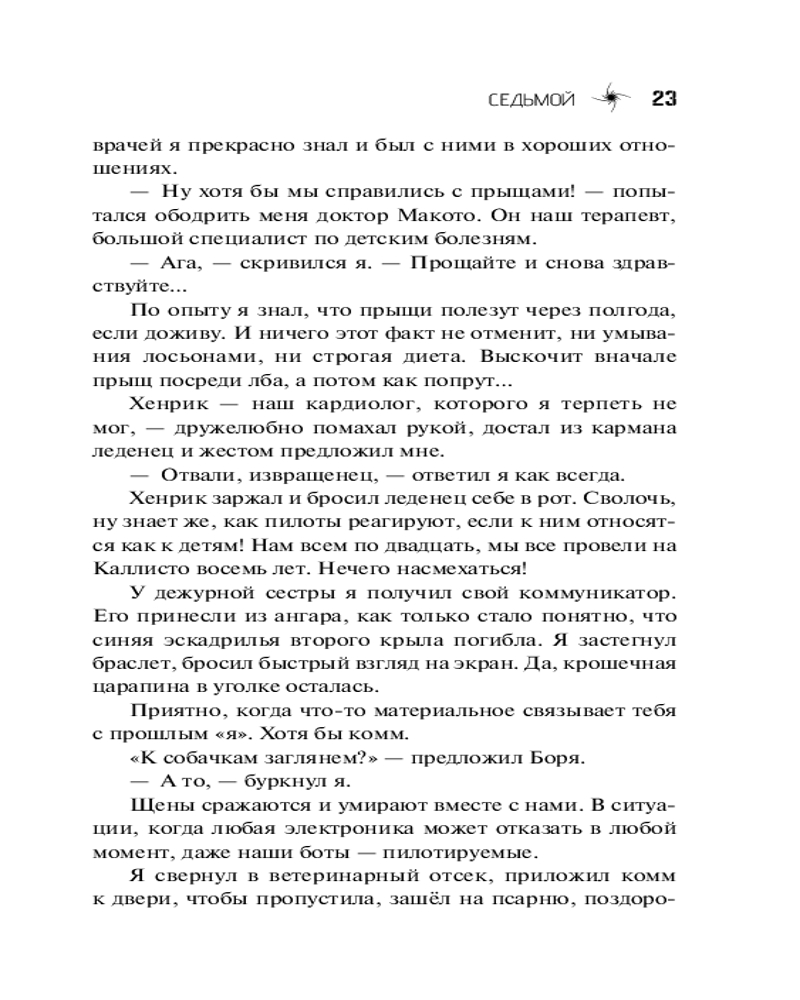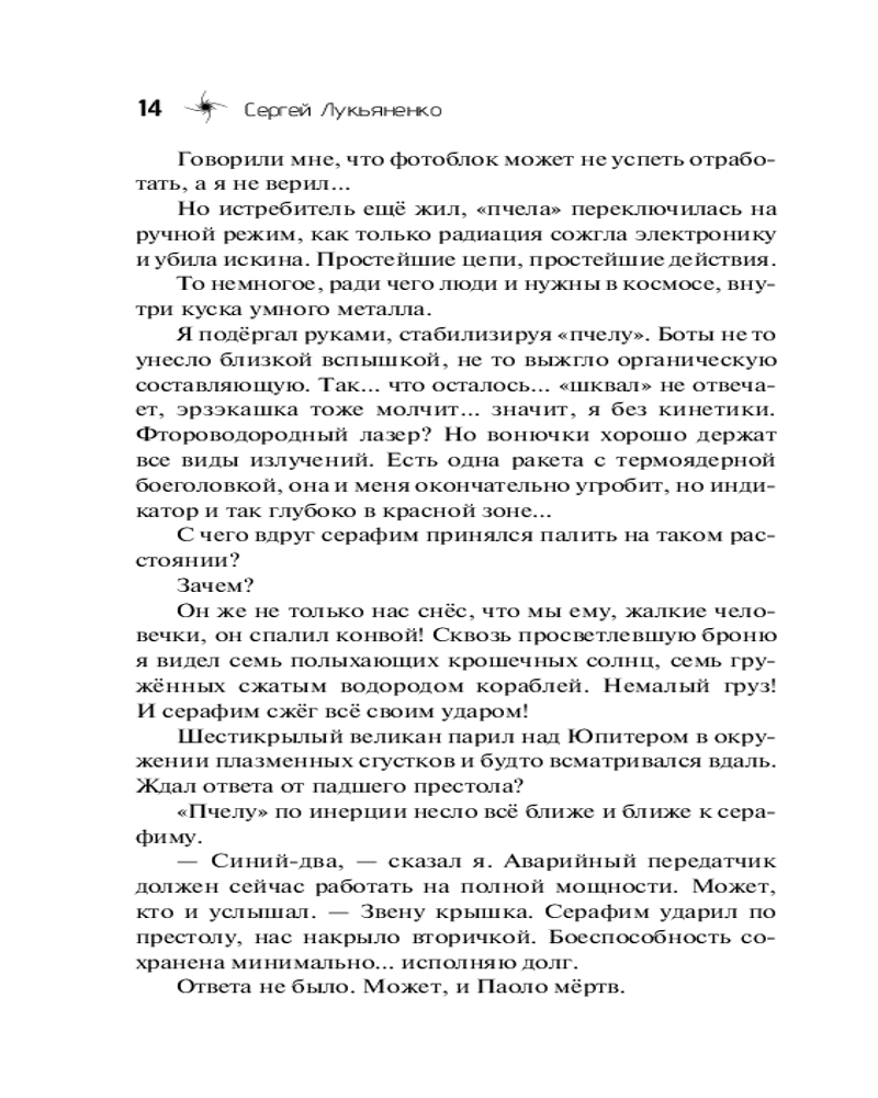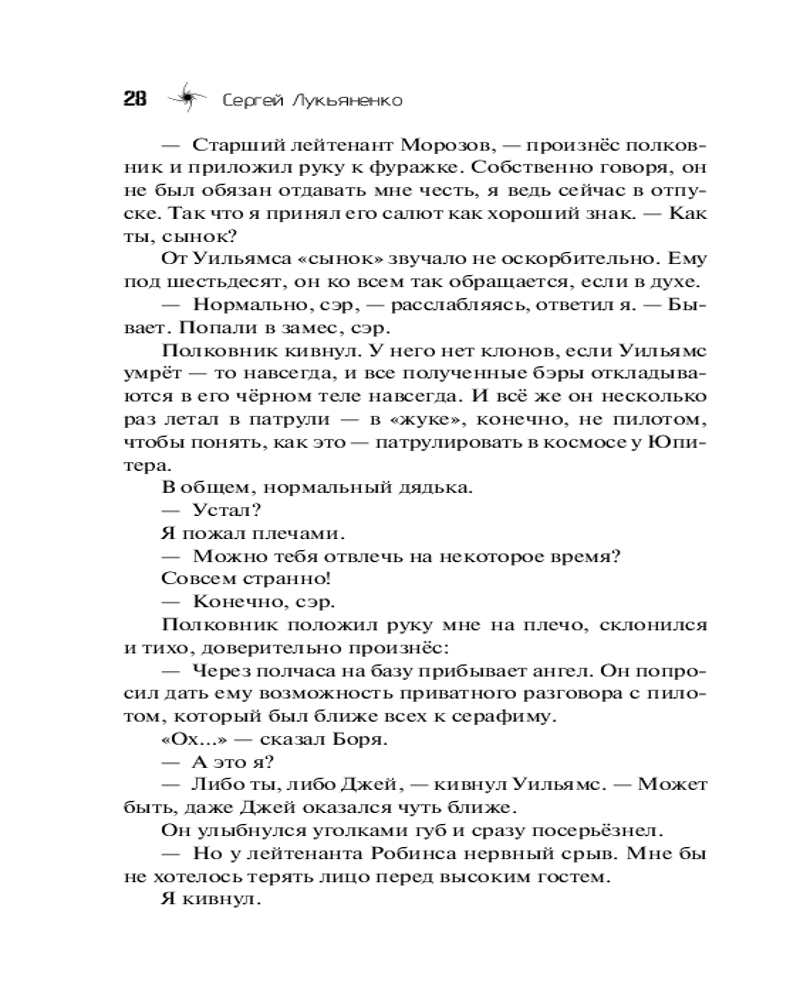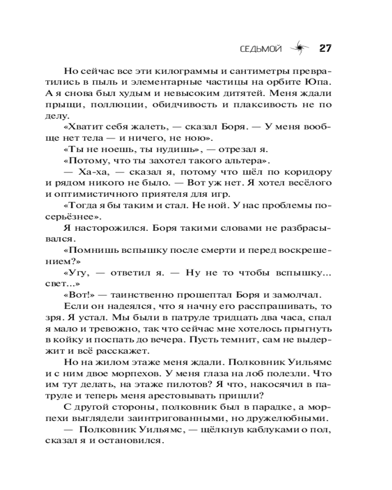 Серия: Книги Сергея Лукьяненко «Седьмой» — роман, открывающий новый цикл Сергея Лукьяненко «Небесное Воинство». Увлекательная космическая фантастика! Это книга о космических кораблях и ангелах, о Земле и космосе, о жизни и смерти, о любви и предательстве, о детских вопросах и взрослых ответах. В общем - обо всём том, о чём только и стоит писать. |