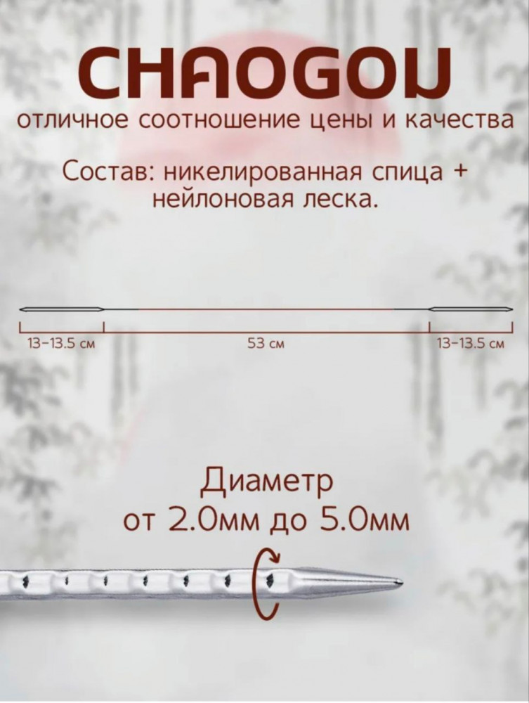 Бренд ChaoGou — это бренд спиц для вязания, которые отличаются квадратной рифлёной формой и удлинёнными кончиками, что позволяет делать более плотные петли. Эти спицы полые внутри, лёгкие, имеют эргономичный дизайн и гладкий стык с леской, что делает процесс вязания более комфортным. |