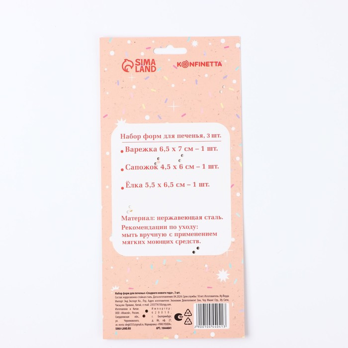 Konfinetta Набор форм для выпечки «Сладкого Нового года»новинка В данный момент этот товар отсутствует в продаже. Возможно, у нас найдется аналогичный или похожий товар здесь. Набор форм — незаменимый помощник для тех, кто любит творить на кухне с вдохновением. Фигурки позволяют легко создавать оригинальные и аккуратные сладости для любого случая — от семейных чаепитий до праздничных угощений. Формы удобно использовать, они не деформируют тесто и обеспечивают чёткие контуры. С их помощью вы сможете порадовать близких вкусным домашним печеньем необычной формы и превратить процесс выпечки в настоящее удовольствие. |