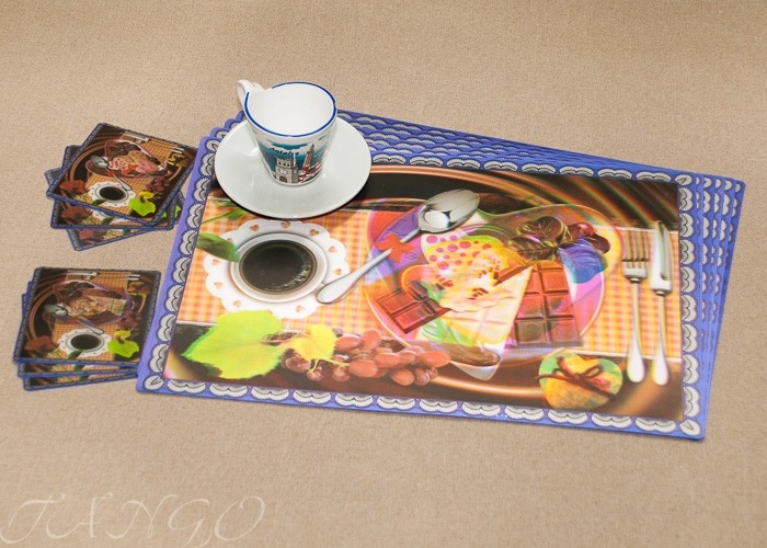 В данный момент этот товар отсутствует в продаже. Возможно, у нас найдется аналогичный или похожий товар здесь. Набор для кухни с 3D эффектом изготовлен из пластика. Стереоскопические салфетки размером 30х60 см - 6 штук и подстаканники - 6 штук.