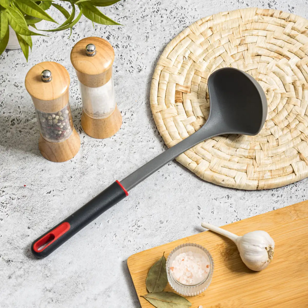 💳 Оплатить за товар можно при получении 🇰🇿 Есть бесплатная доставка по Казахстану от 1 дня 🎁 Копите бонусы с каждой покупки Половник имеет оригинальную форму черпака, формирующую носики для слива по обеим сторонам. Рабочая часть половника изготовлена из первичного пищевого нейлона и выдерживает температуру до 200°С. Ручка имеет оригинальную форму: вдавленная на лицевой части и выпуклая на оборотной — для более плотного контакта с рукой во время процесса готовки. Идеально подходит для посуды с антипригарным покрытием. |