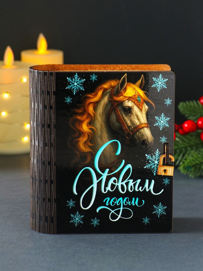 Шкатулка-книга «Снежинки с конём»новинка -25%