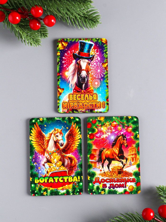 Дарим Красиво Набор магнитов на холодильник «Конь новогодний. Достатка в дом»новинка -25%